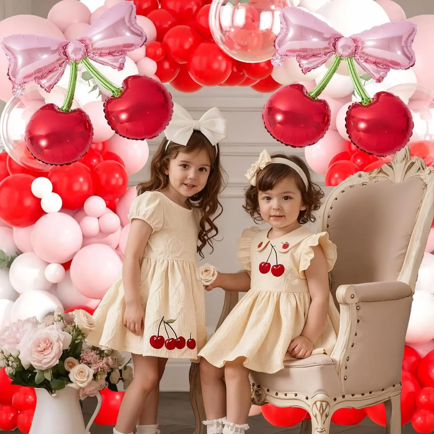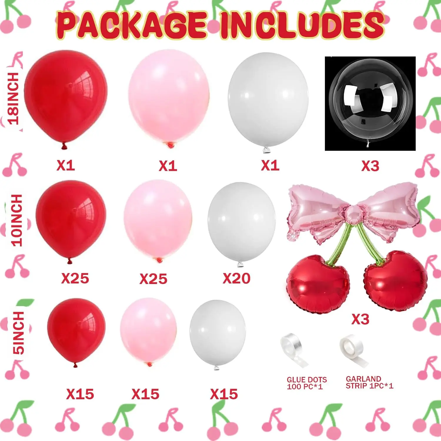Cherry Theme Balloon Arch Kit Red Pink White Clear Bobo Garland Party Decor Set