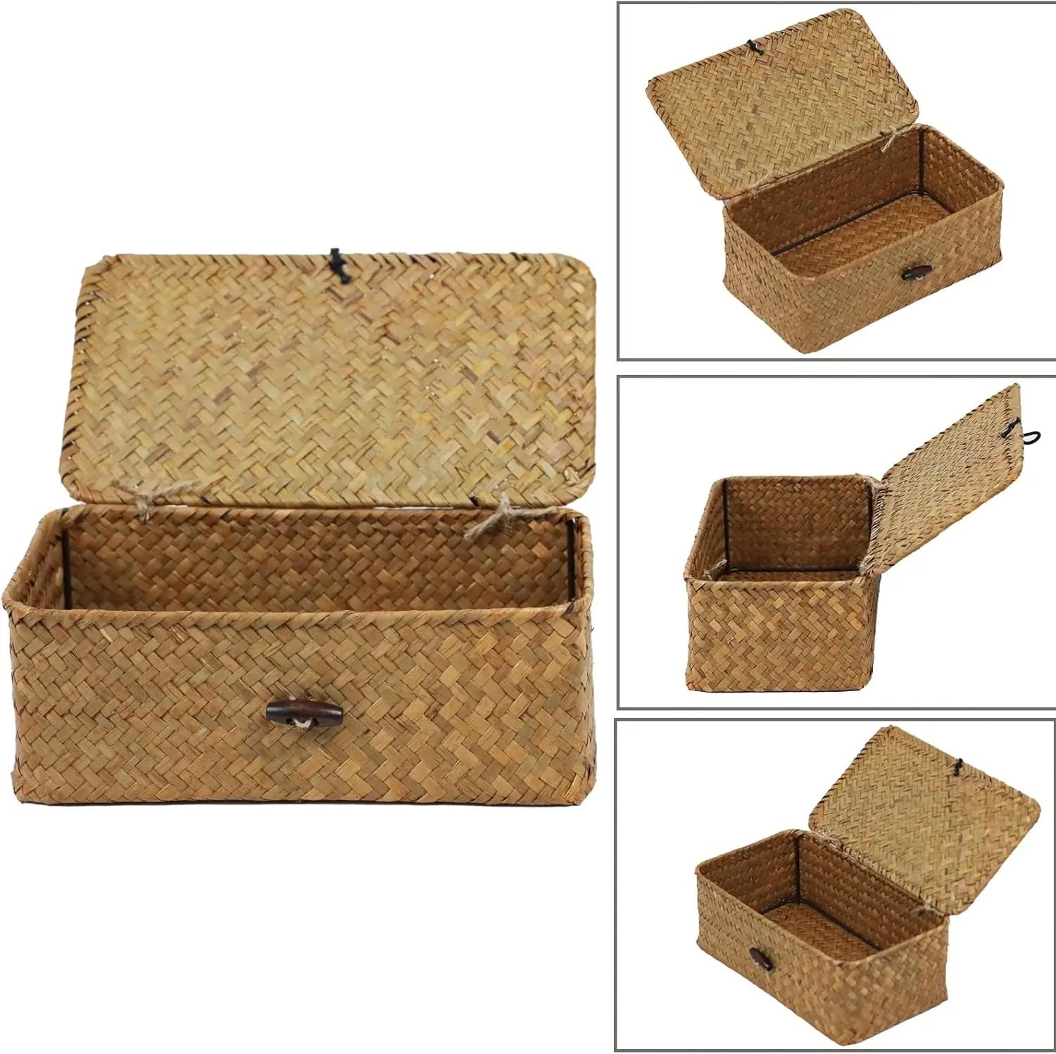 5. Wicker Storage Basket with Lid, Natural Seagrass Storage Baskets for Organizing, Rectangular Woven Basket for Storage, Decorative Boxes Bins with Lids Home Organizer Decor