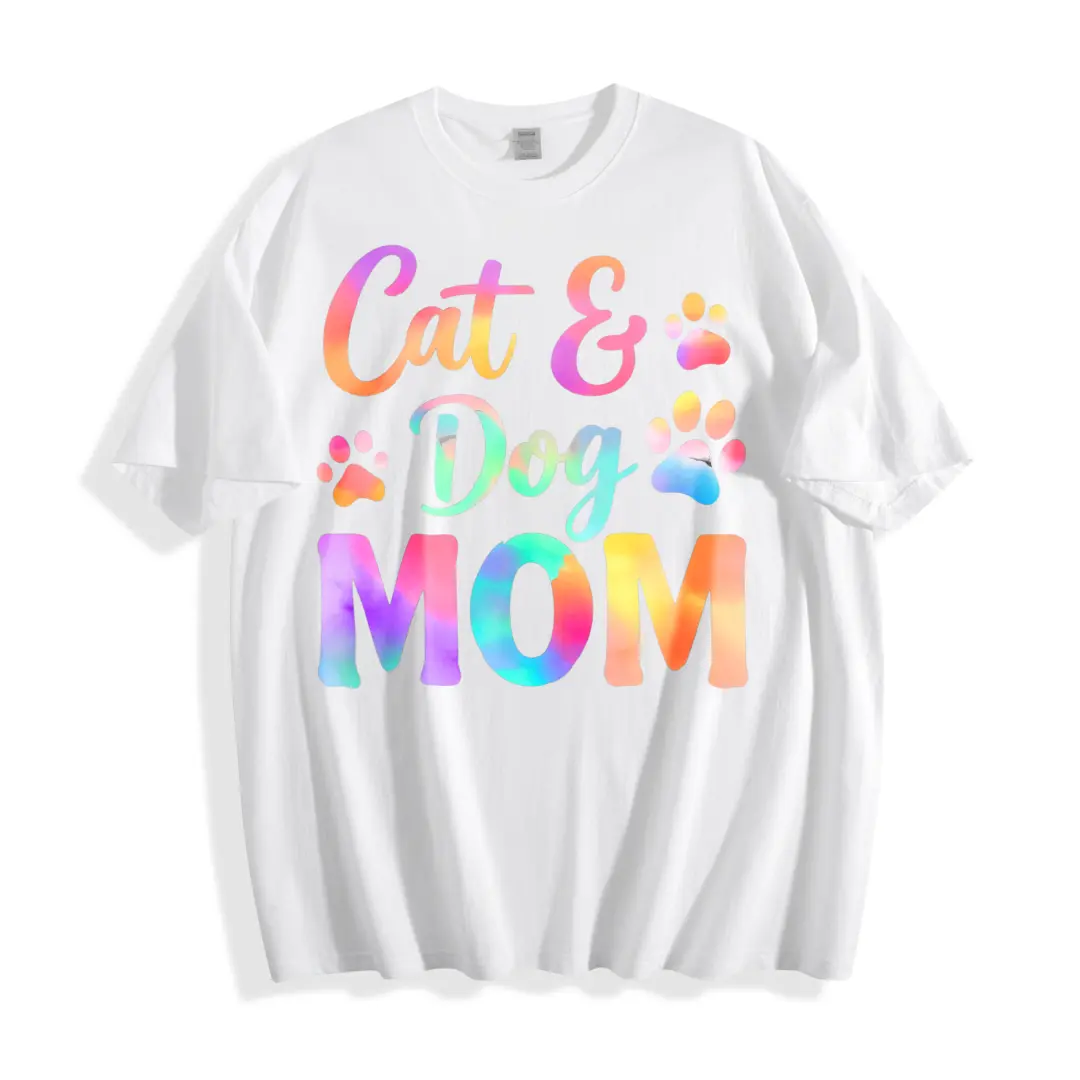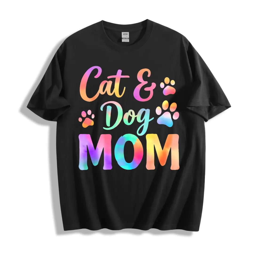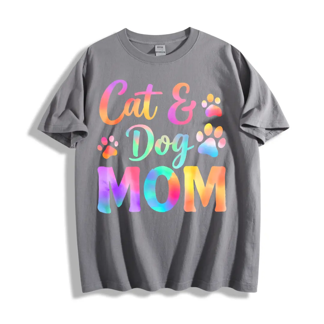 Colorful Graphic Unisex T-Shirt Cat And Dog Mom Design For Pet Lovers Summer Wear Perfect Gift For Animal Enthusiasts