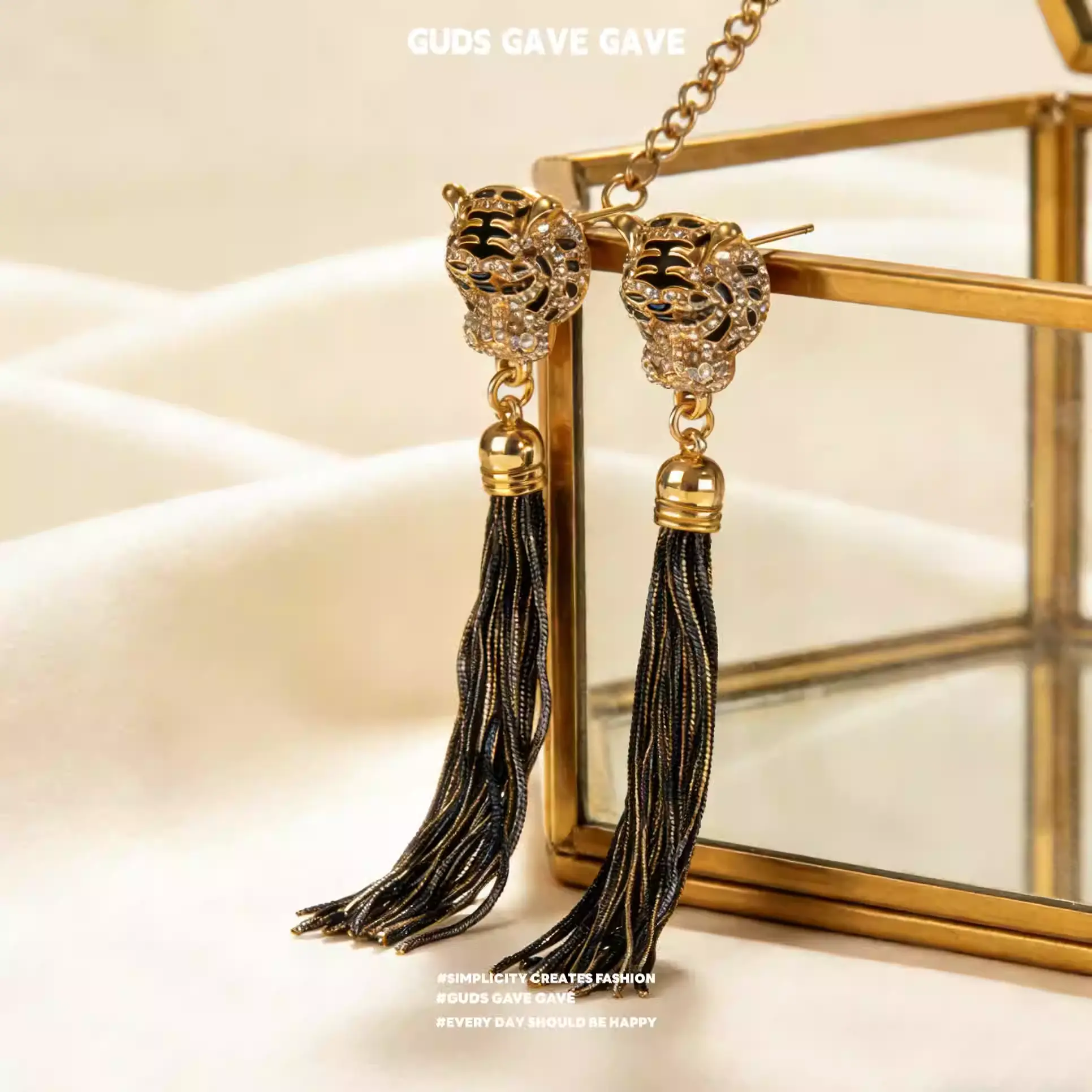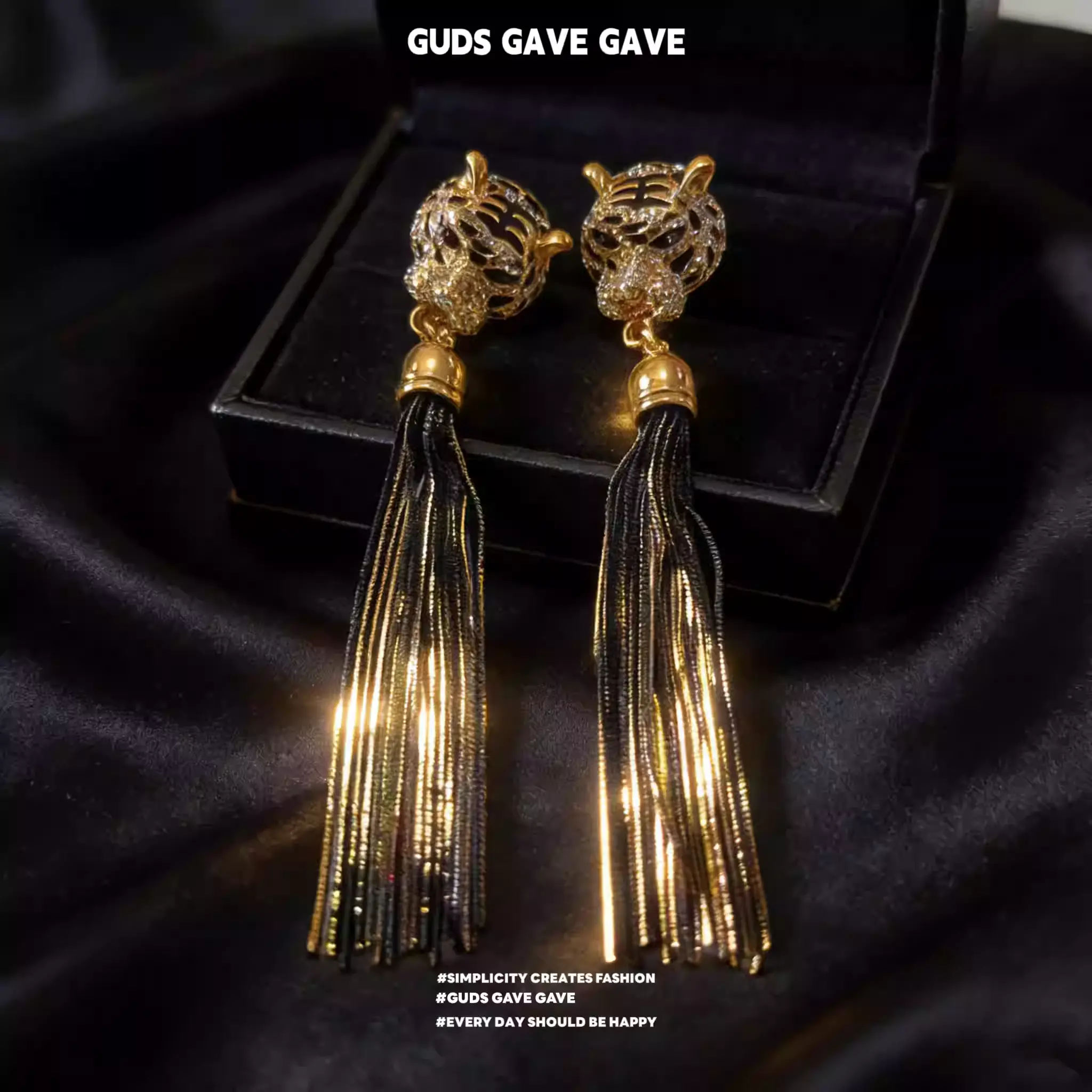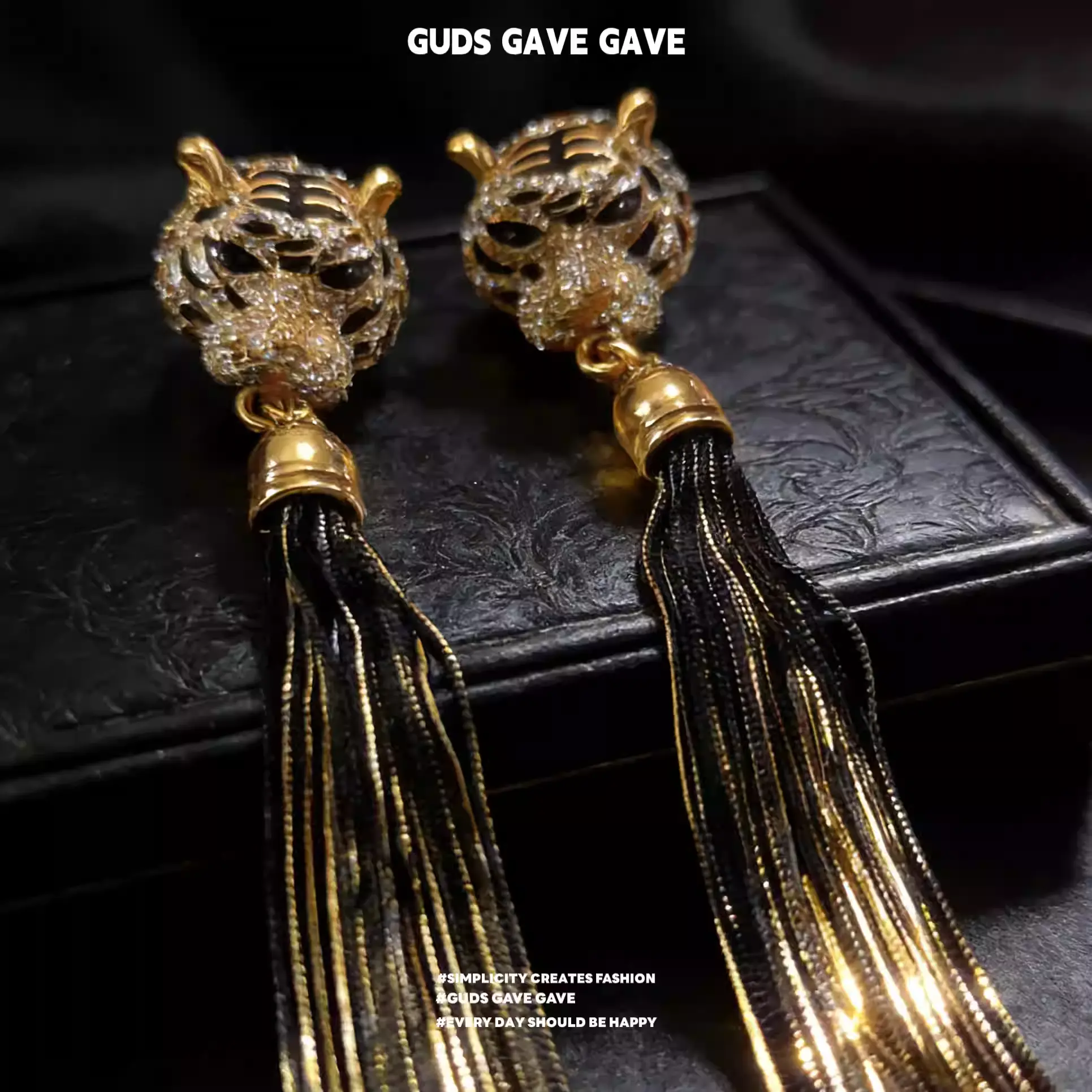 These distinctive high-end earrings from GUDS GAVE feature a bold exaggerated tiger head design, paired with a long vintage shoulder duster silhouette that creates a stunning and imposing visual effect.