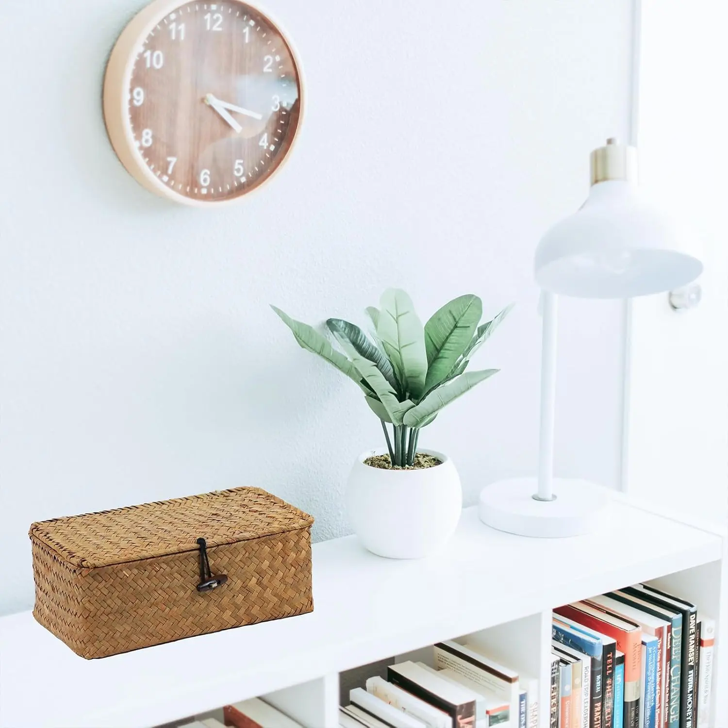 ·【Natural Seagrass】Our seagrass storage baskets for shelves are hand-woven with high-quality natural seagrass and metal frame inside, making them sturdy and functional as well as stylish. The unique button design secures the lid to the box, complementing your room's natural aesthetic.