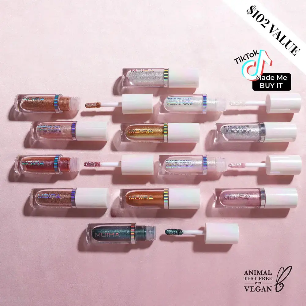 Sparkle like a diamond with MOIRA Diamond Daze Liquid Shadow. This non-crease, no fallout, and long-lasting formula will glide on effortlessly creating the perfect eye-catching look. Dazzle in multichrome shimmers and glitters day and night!
