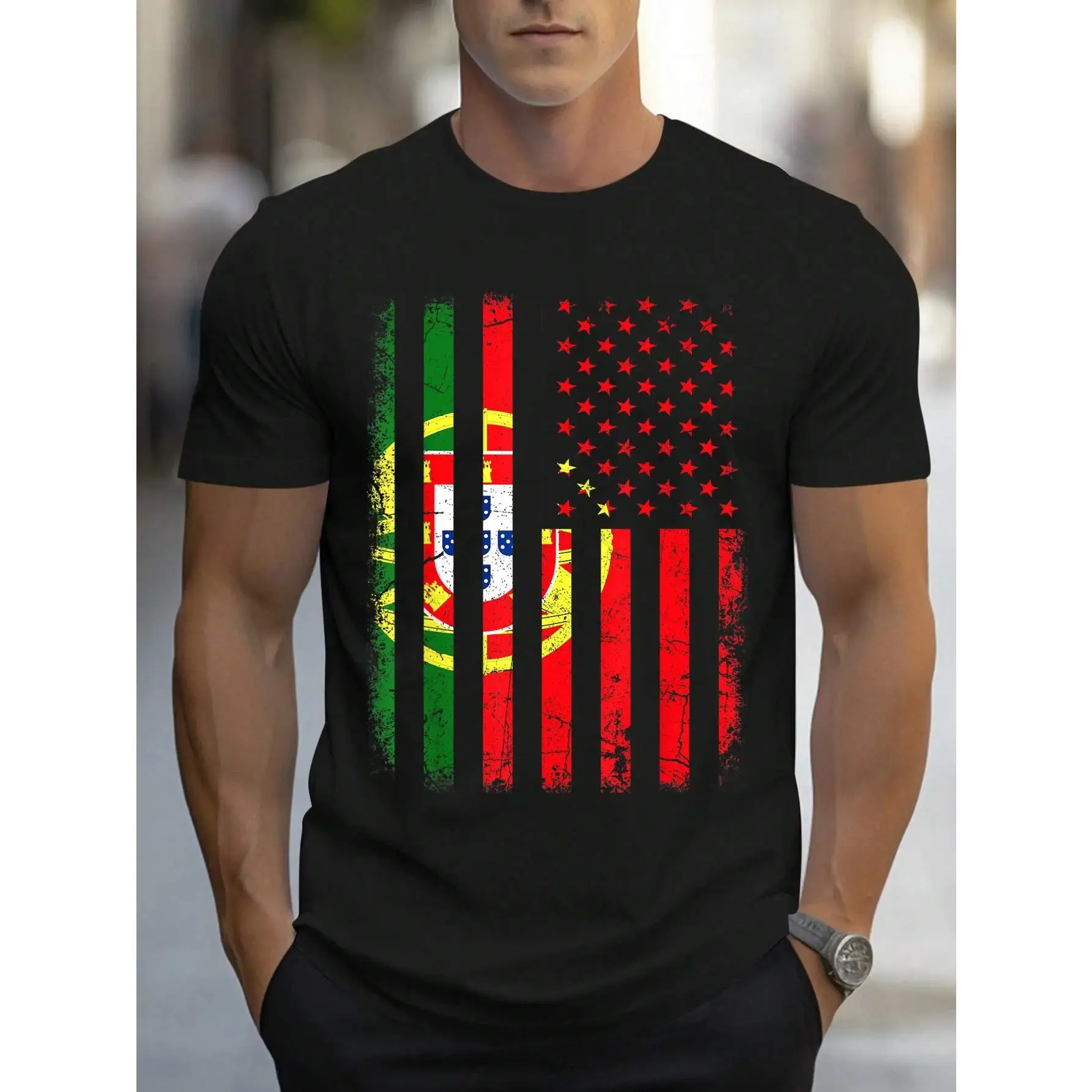 GGOR 100% Cotton Portuguese American Flag Portugal America Pride Heritage T-Shirt