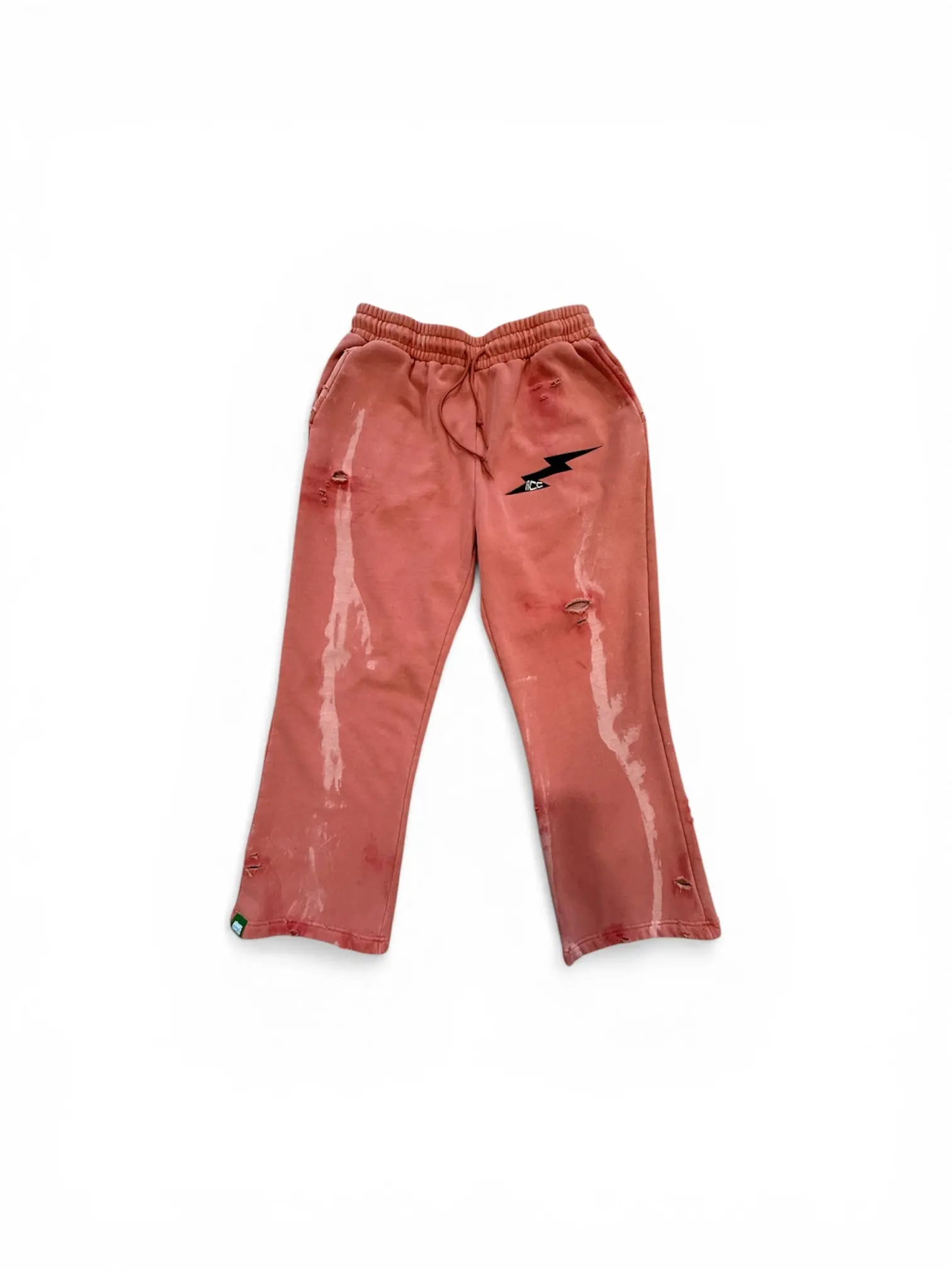 The ACC Lightning Bolt Sweatsuit is a hand-made, distressed set that hits different. Featuring a relaxed-fit hoodie and matching baggy sweatpants, both rocking the signature ACC lightning bolt logo. The washed-out coral/tangerine colorway gives it that lived-in, one-of-a-kind look — no two pieces are exactly alike.