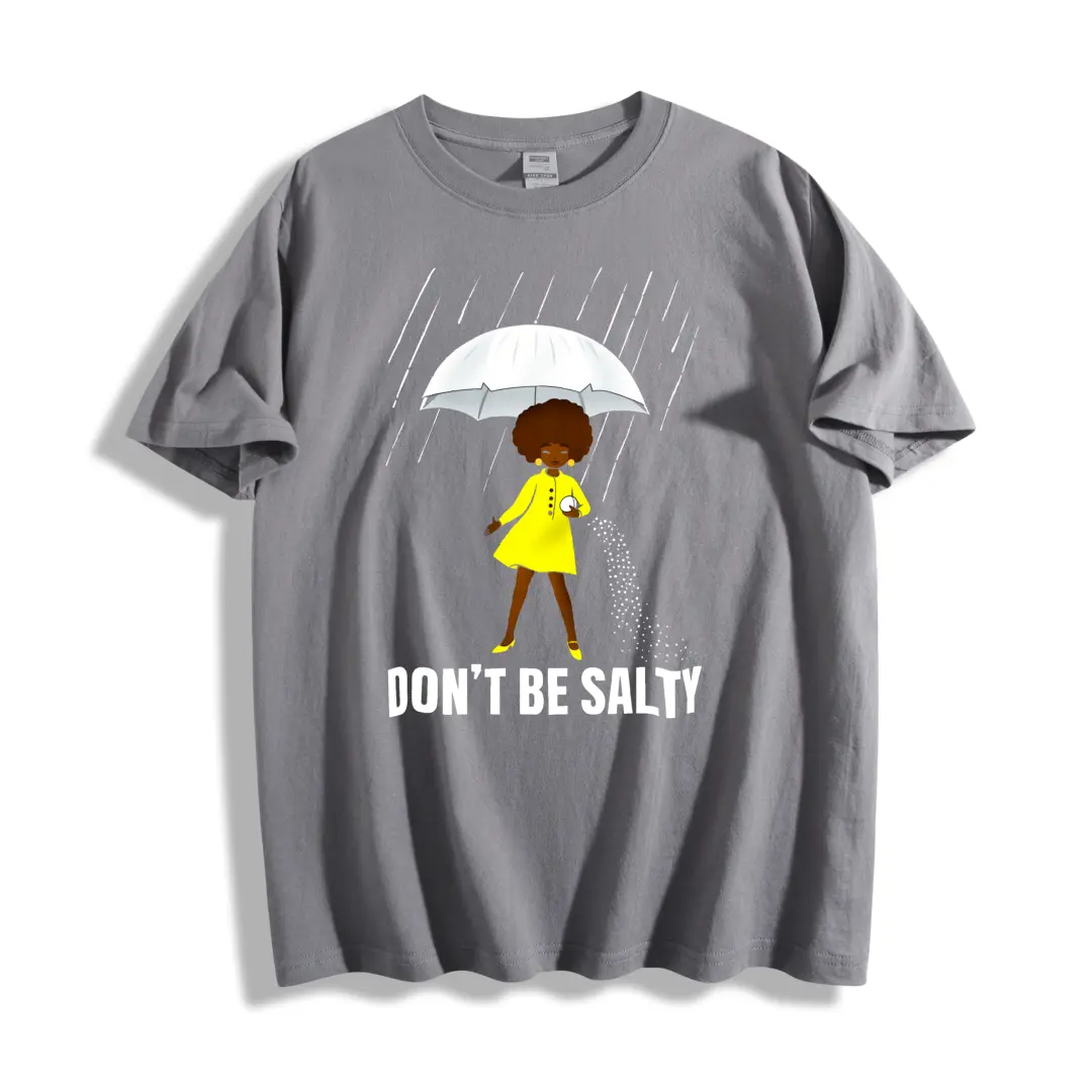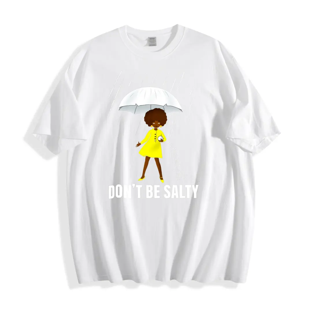 Casual Style Unisex T-Shirt With Cute Girl In Yellow Raincoat Holding Umbrella And Text Don't Be Salty Perfect For Rainy Days And Everyday Wear Ideal Gift For Friends Family And Loved Ones Who Love Fun And Positive MessagesCasual Style Unisex T-Shirt With Cute Girl In Yellow Raincoat Holding Umbrella And Text Don't Be Salty Perfect For Rainy Days And Everyday Wear Ideal Gift For Friends Family And Loved Ones Who Love Fun And Positive Messages