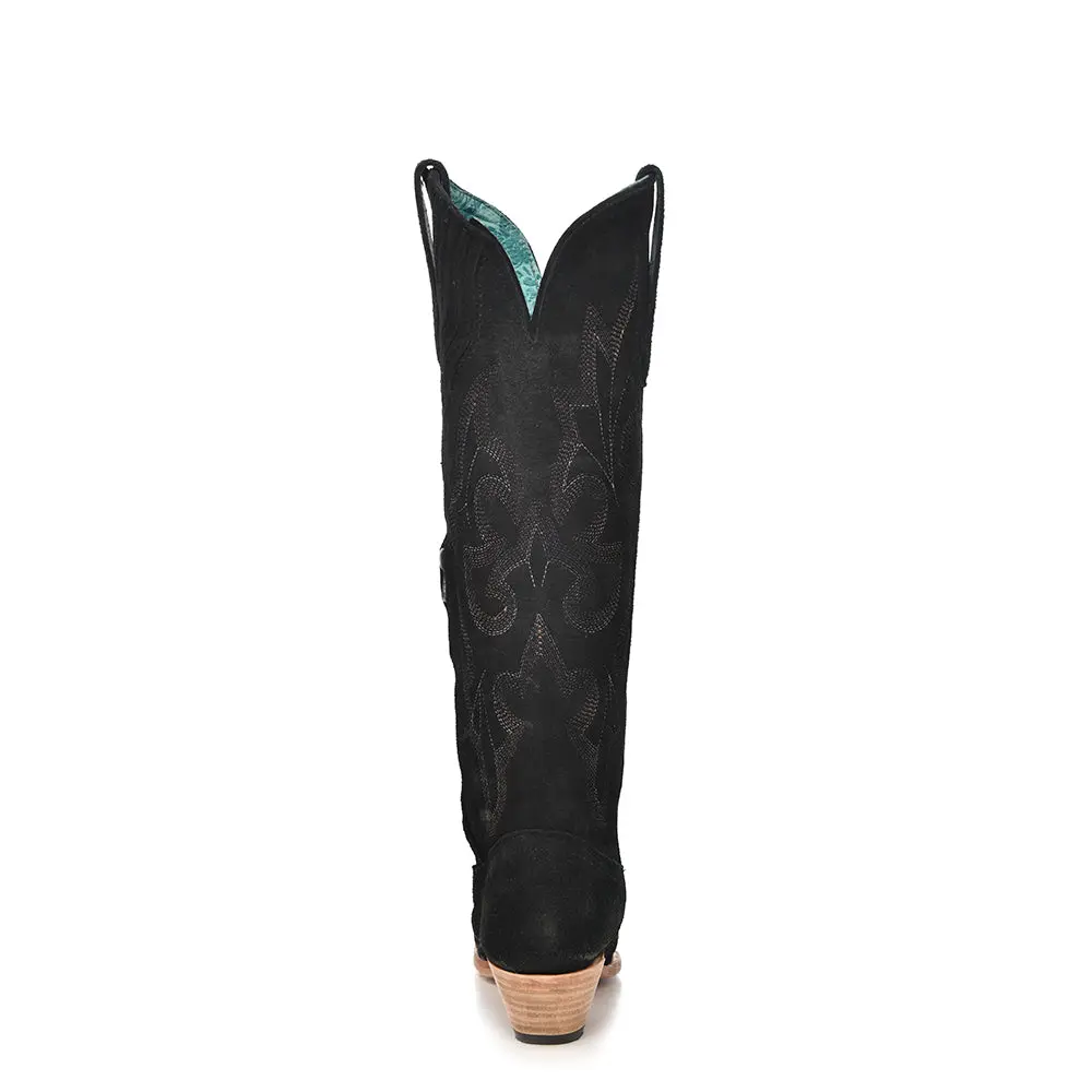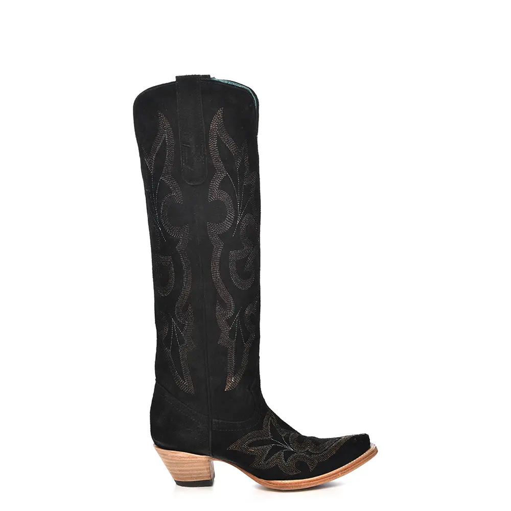 These Corral black suede boots are crafted from genuine premium suede with detailed embroidery for a refined, textured look with standout character. Featuring stud accents and a classic Western silhouette, they deliver versatile style and premium handcrafted quality that elevate both casual and dressier outfits.