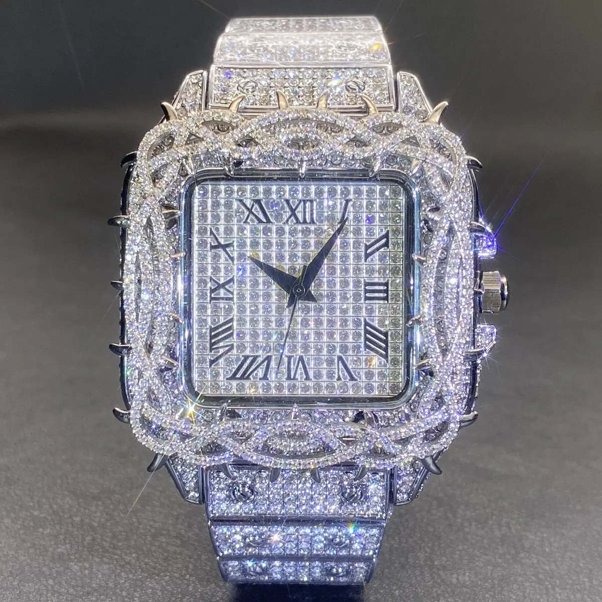 Elevate your style with the Iced Out Santos Square Watch. This hip hop luxury watch features a stunning diamond bezel, perfect for those who love a bold look. Available in gold and silver, it's a versatile accessory for any outfit. The watch combines elegance with a modern twist, making it a standout piece. Ideal for those who want to make a statement.