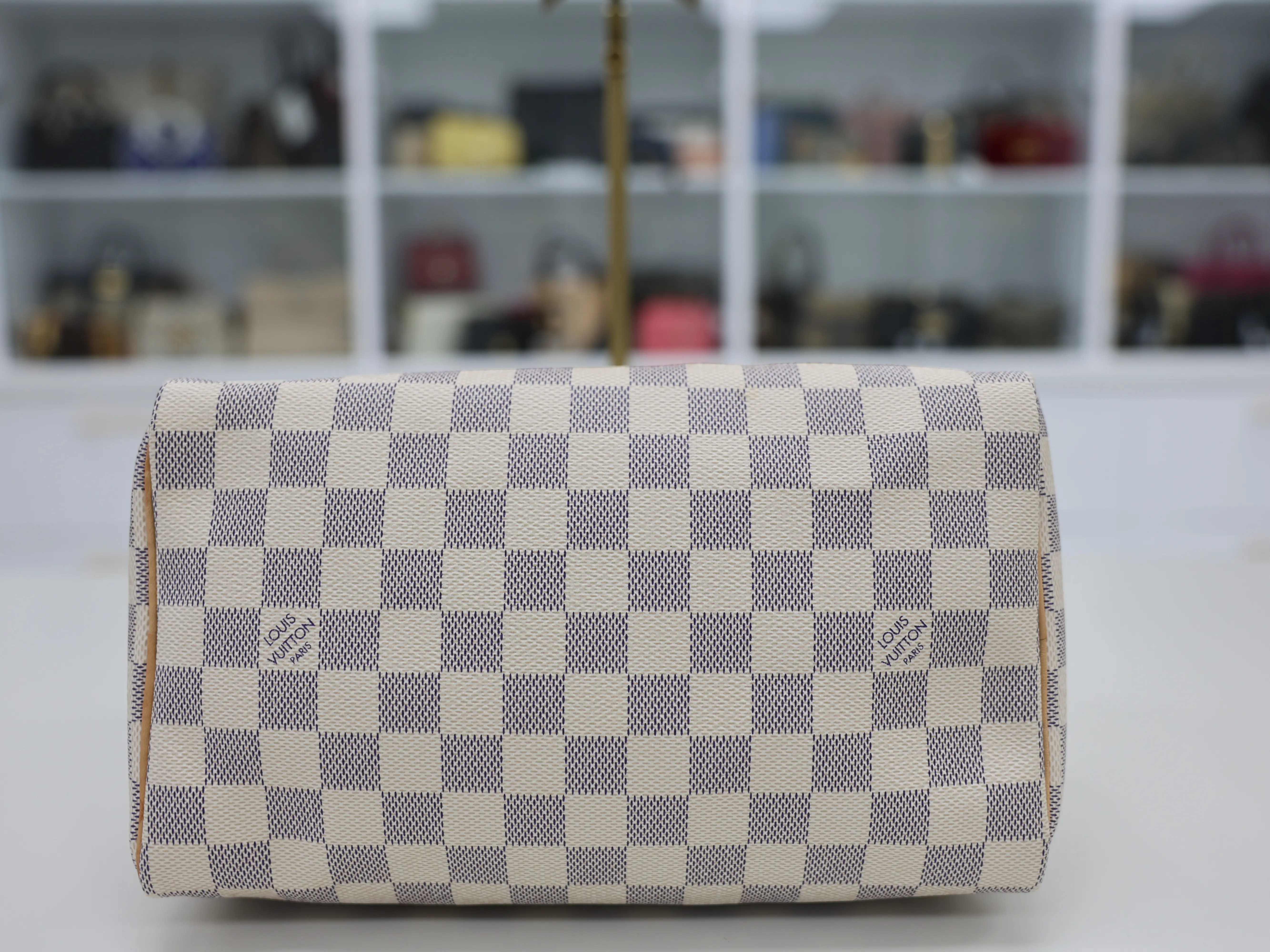 The LOUIS VUITTON SPEEDY 25 DAMIER AZUR is a timeless accessory. This bag features the iconic Damier Azur pattern, known for its distinctive blue and white checkered design. Perfect for those who appreciate classic Louis Vuitton craftsmanship. The SPEEDY 25 size offers a balance of style and functionality, making it a versatile choice for everyday use.