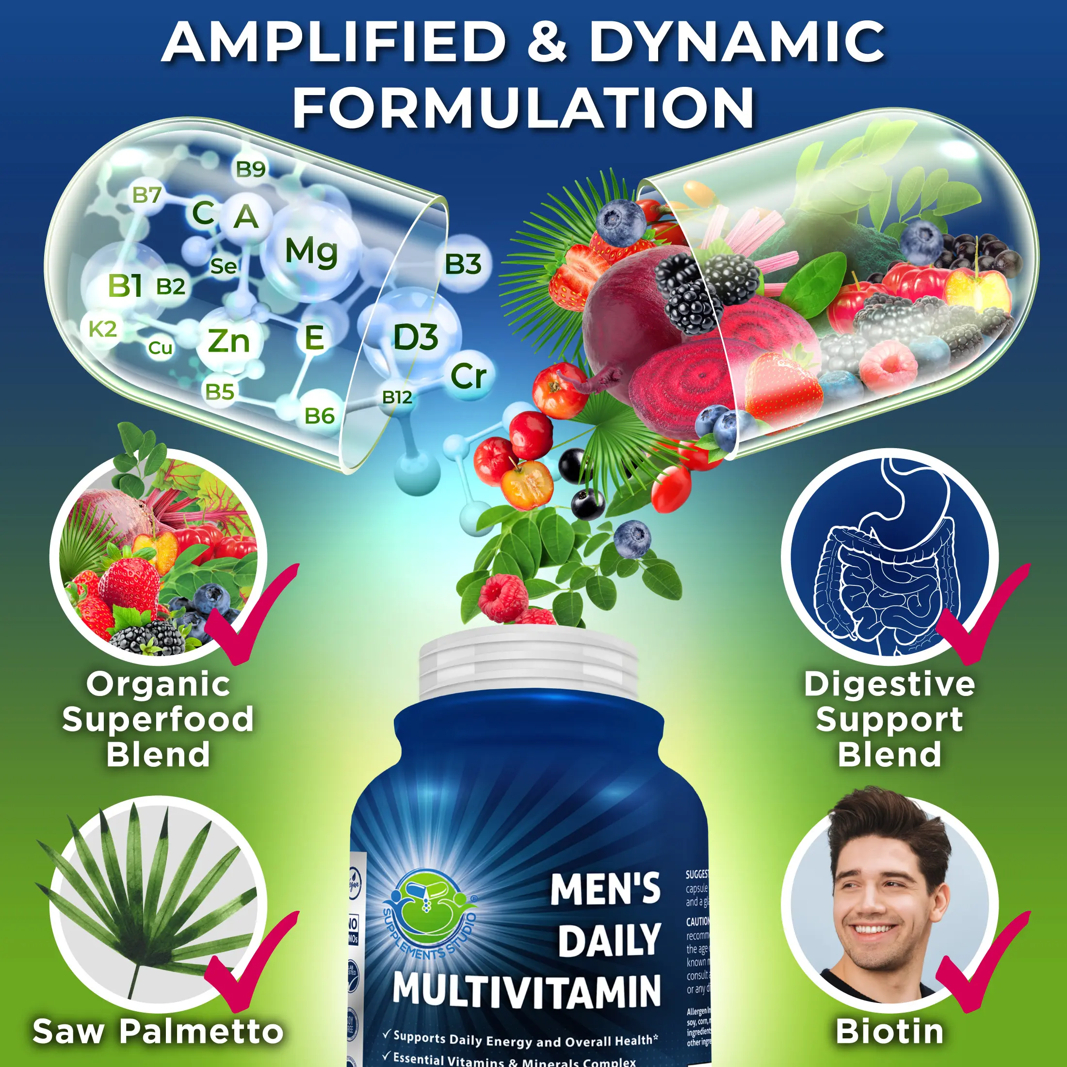 ·Easy to Swallow, Once Daily – A vegan multivitamin for men designed to support daily energy and overall wellness in one convenient capsule. Includes saw palmetto to support men’s health.