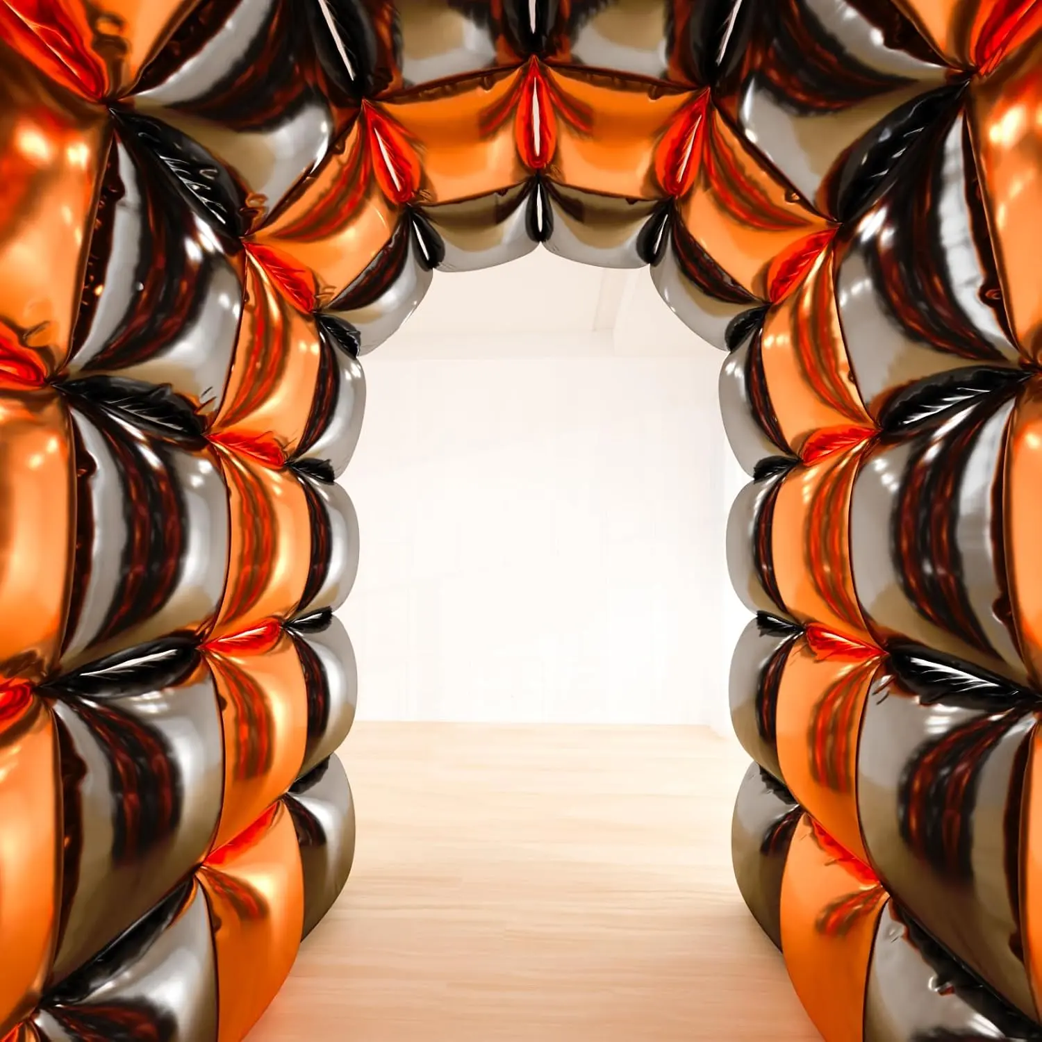 Create a bold and festive setup with black and orange square foil balloons designed to build a striking wall or arch display.