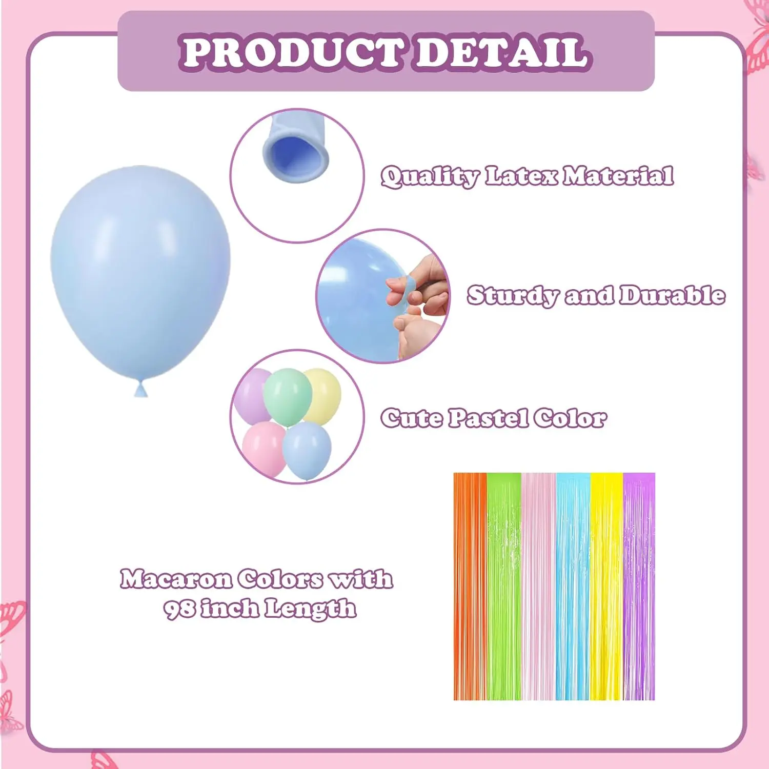 Pastel Unicorn Balloon Arch Kit Rainbow Fringe Curtain Backdrop Party Decor Set