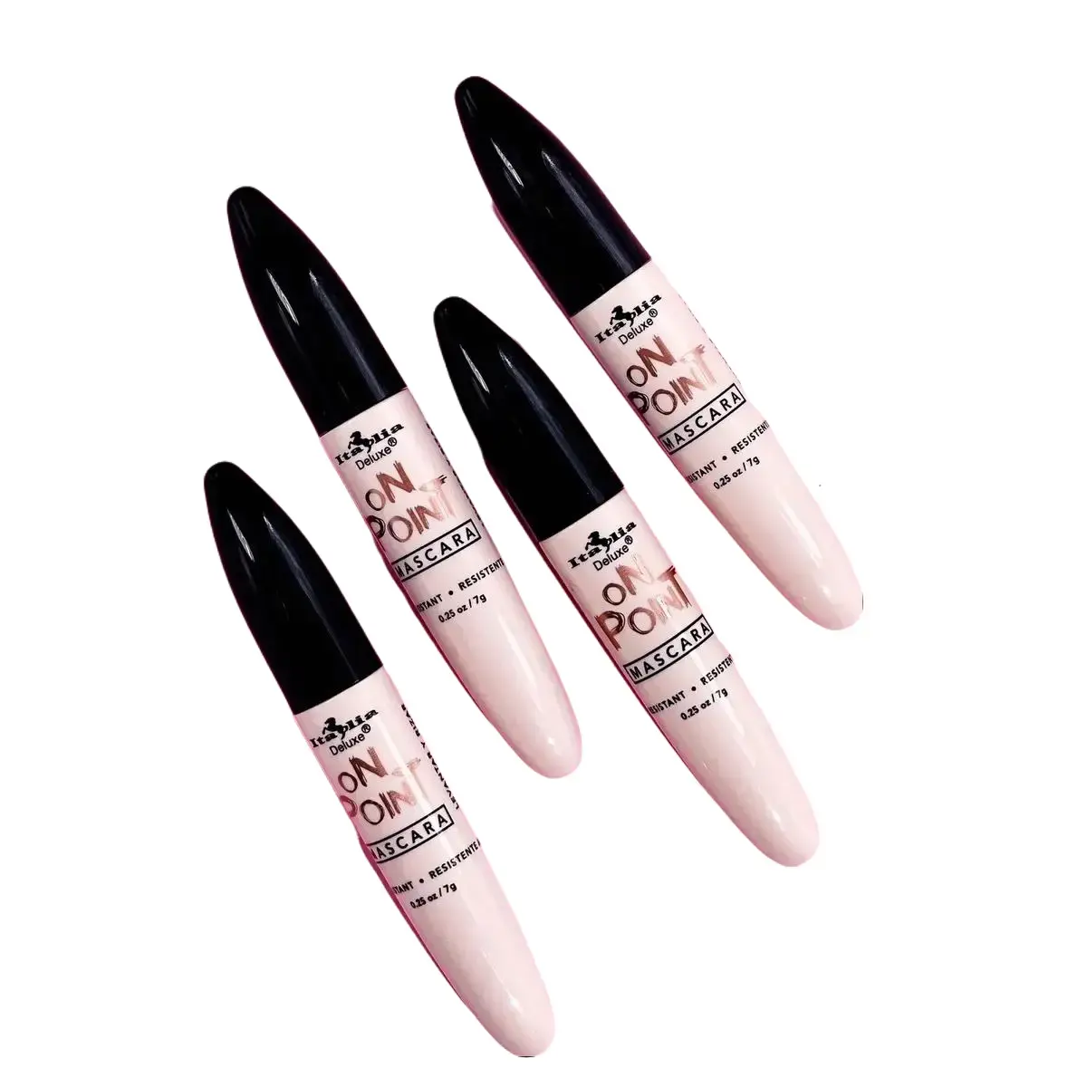 Italia Deluxe On Point! Mascara Intense Black for Lifted Curled Lashes with Silicone Brush Bold Jet Black Color Makeup Essential