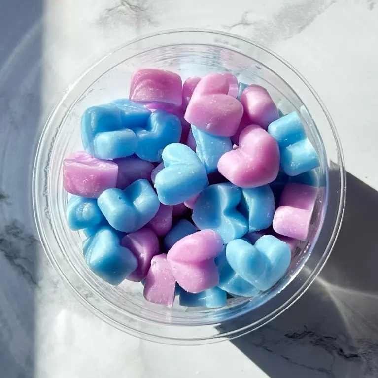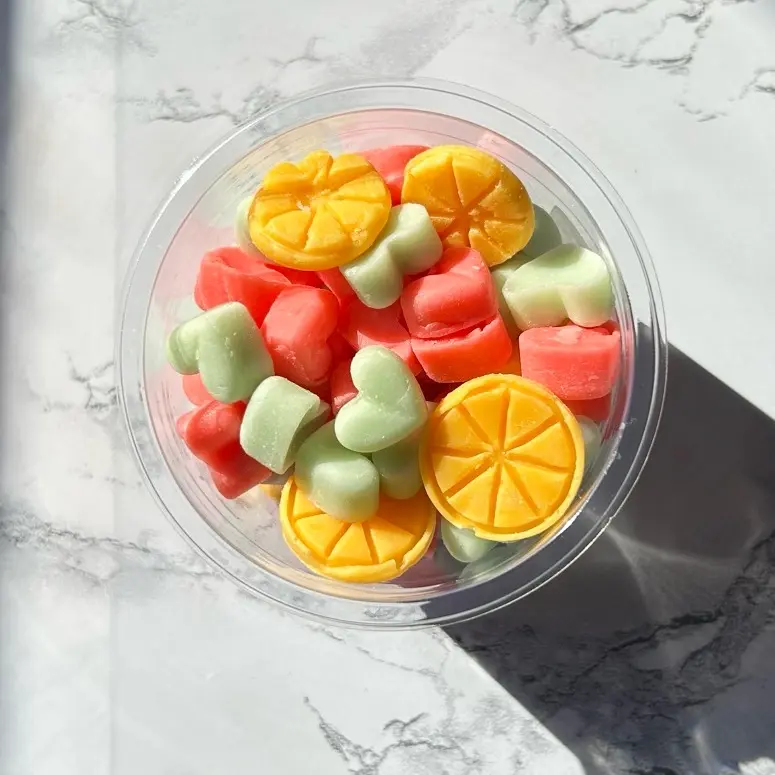 Variety of fun wax melts different shapes and colors.
