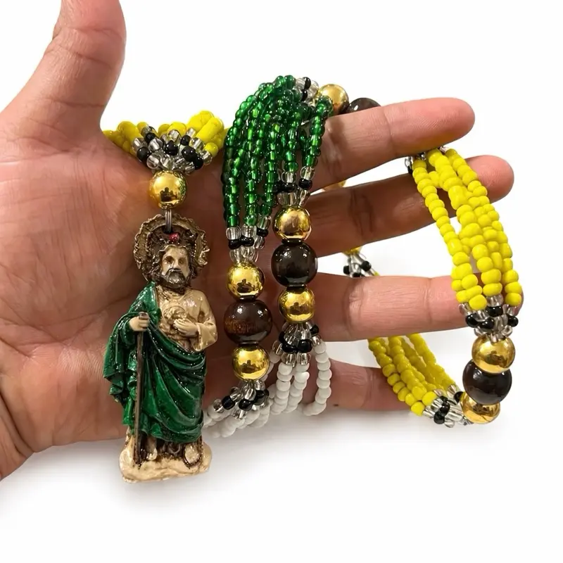 🔹 San Judas Tadeo pendant measures 3 inches, featuring detailed carving with green accents.