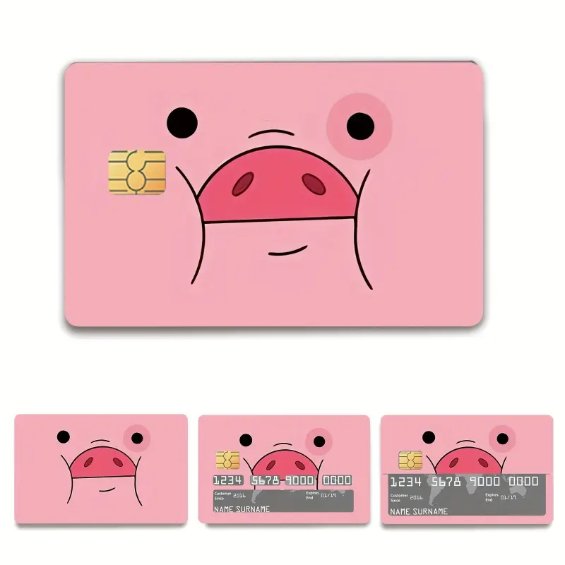 3pcs, 1pc Spare Pink Pig Creative Pattern Credit Card Stickers Anti-Fingerprint And Anti-Scratch Cards Ultra-Thin, Suitable for Debit Card, Transportation Card And Credit Card