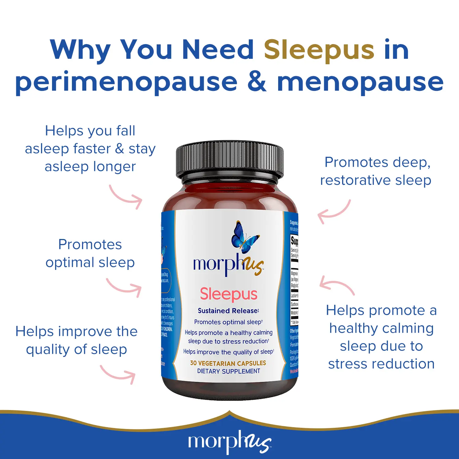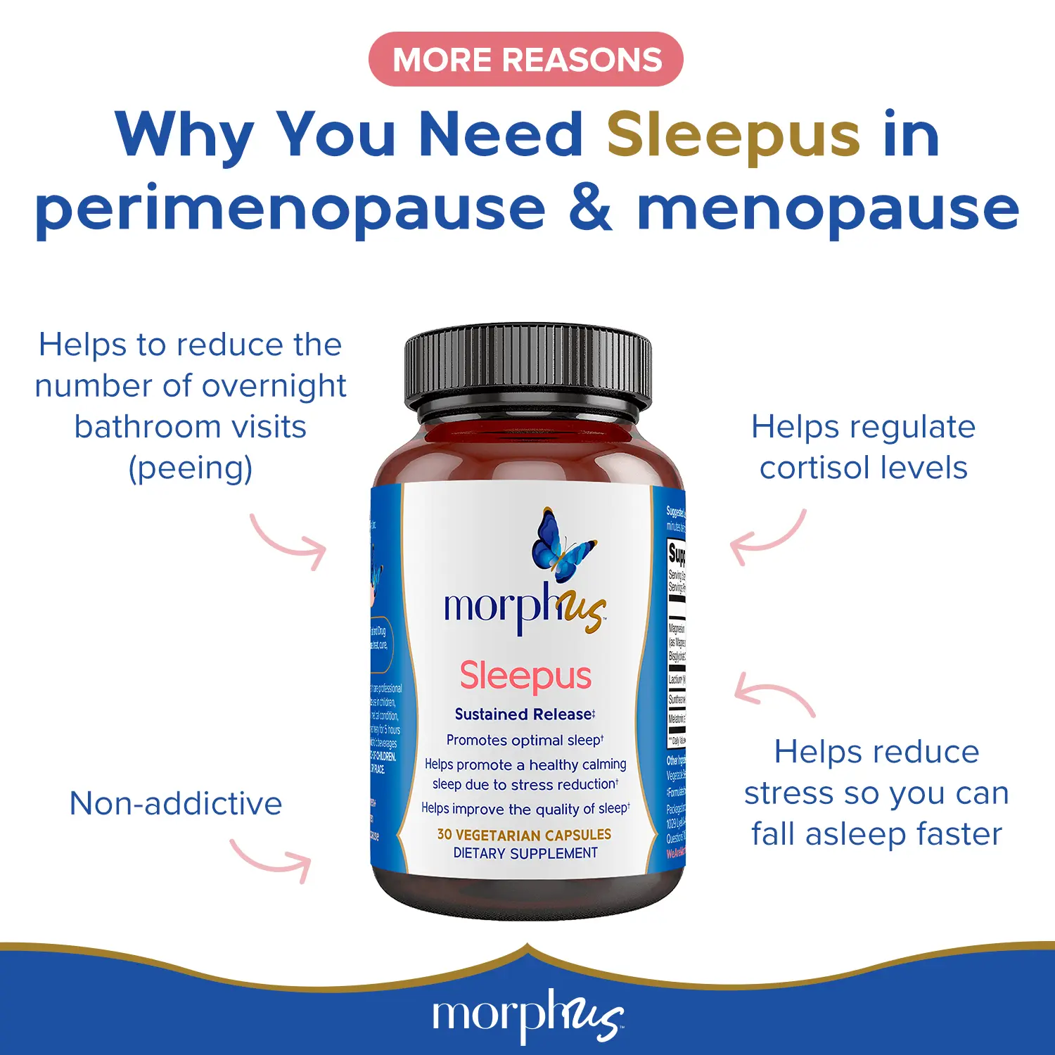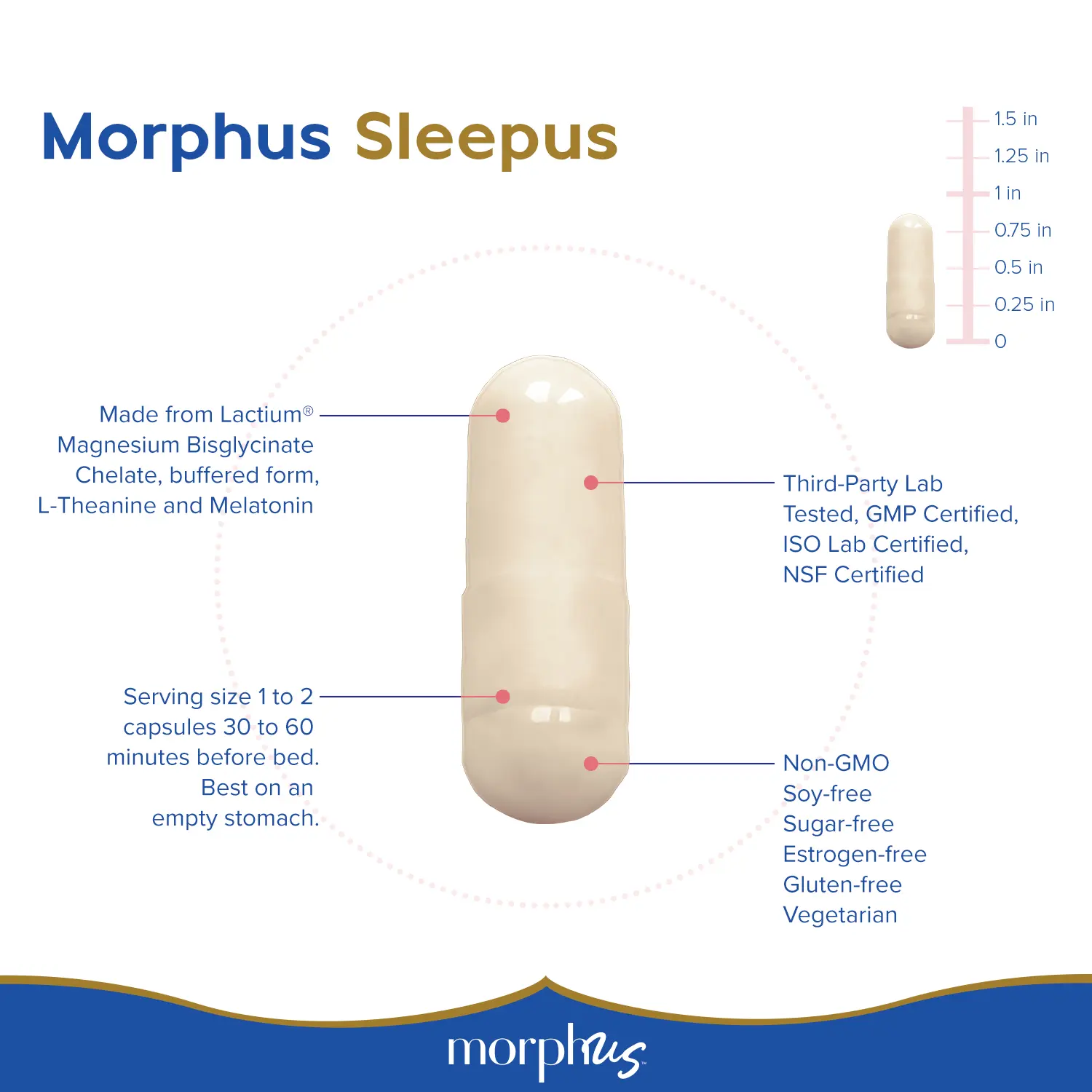 Sleepus is a non-habit-forming supplement designed for real sleep. Formulated by Morphus, it calms your body and mind. Minimize those 2am - 4am wake-ups and wake up refreshed. Supports falling asleep and maintaining sleep throughout the night. Improves sleep quality and quantity.