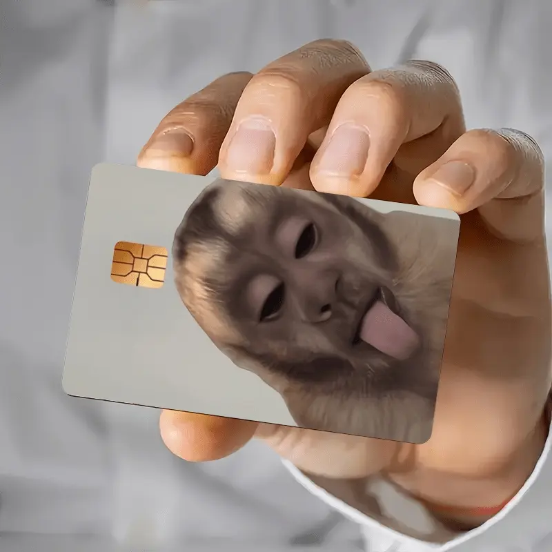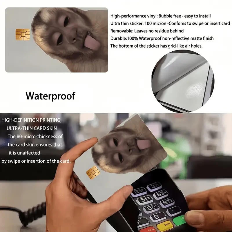 2 Cute and Funny Monkey Sticking Out Tongues Design Pattern Credit Card Skin Cover Waterproof Stickers, Ultra-thin, High-quality, Scratch-resistant. Suitable for Credit Cards, Bank Cards, Transit Cards. Removable Self-adhesive for Most Cards.