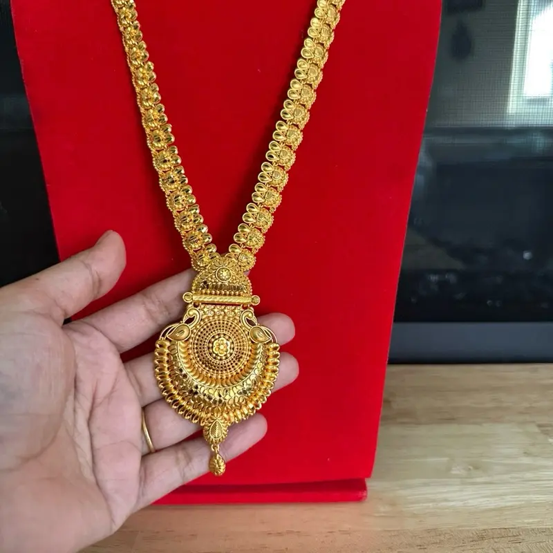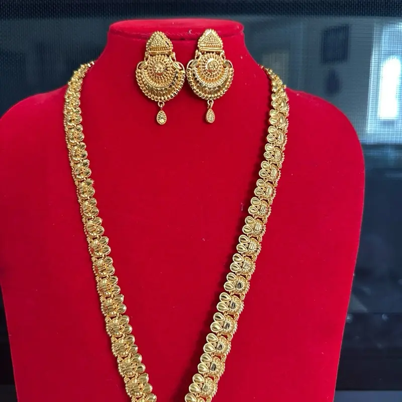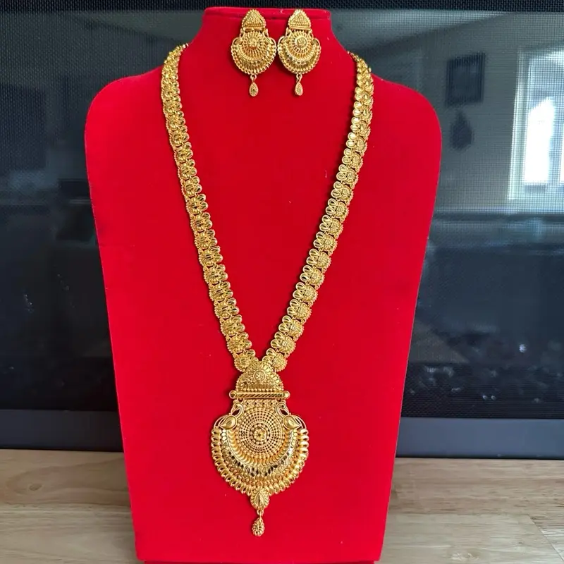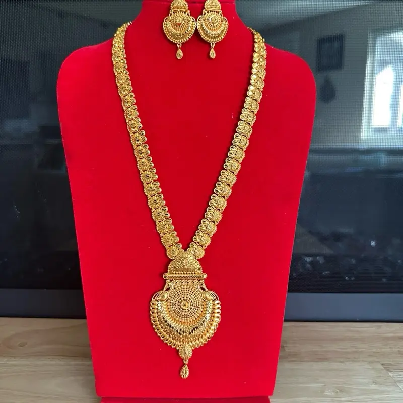 Traditional Nepali Gold Plated Rani Haar Necklace with Matching Earrings - Elegant Jewelry Set for Special Occasions