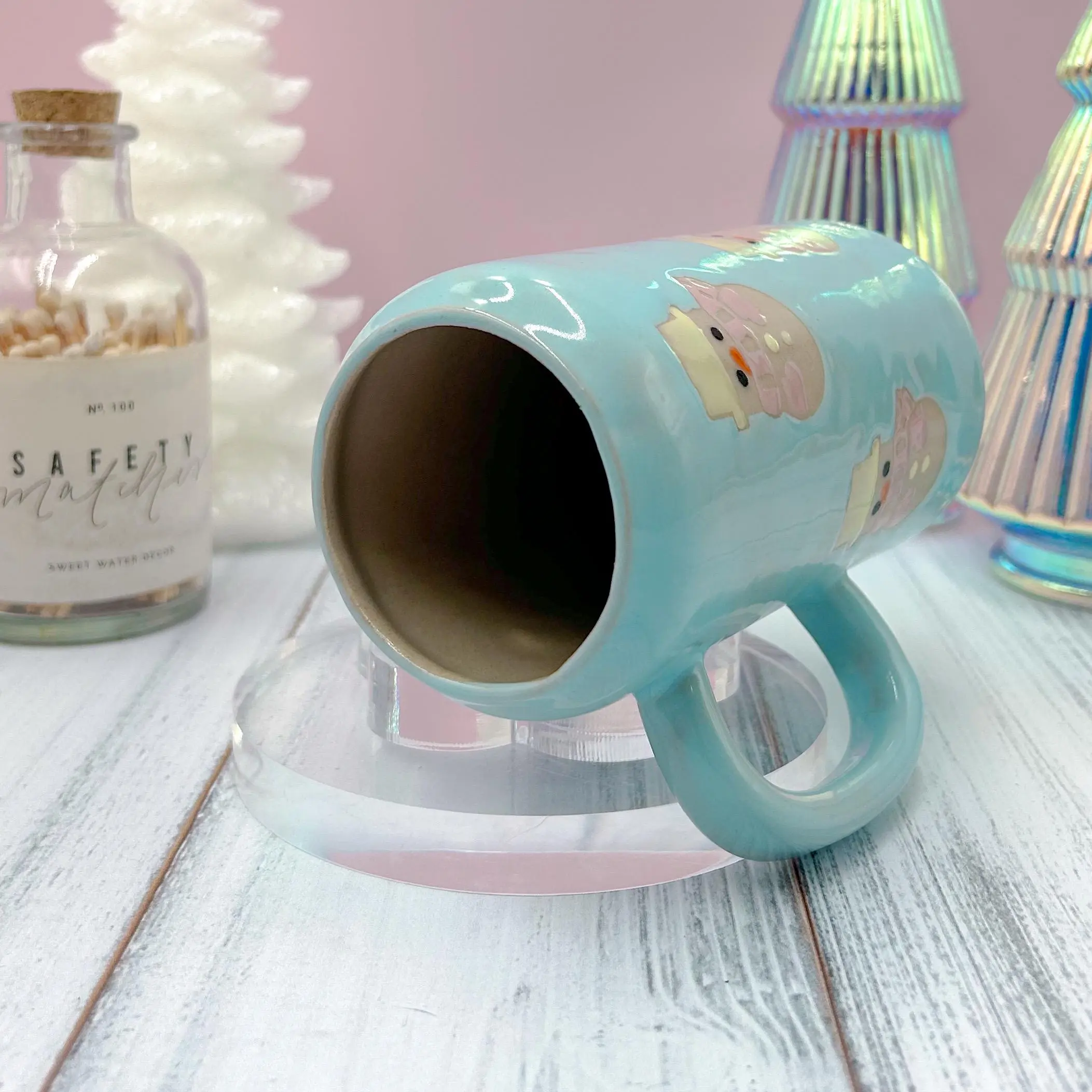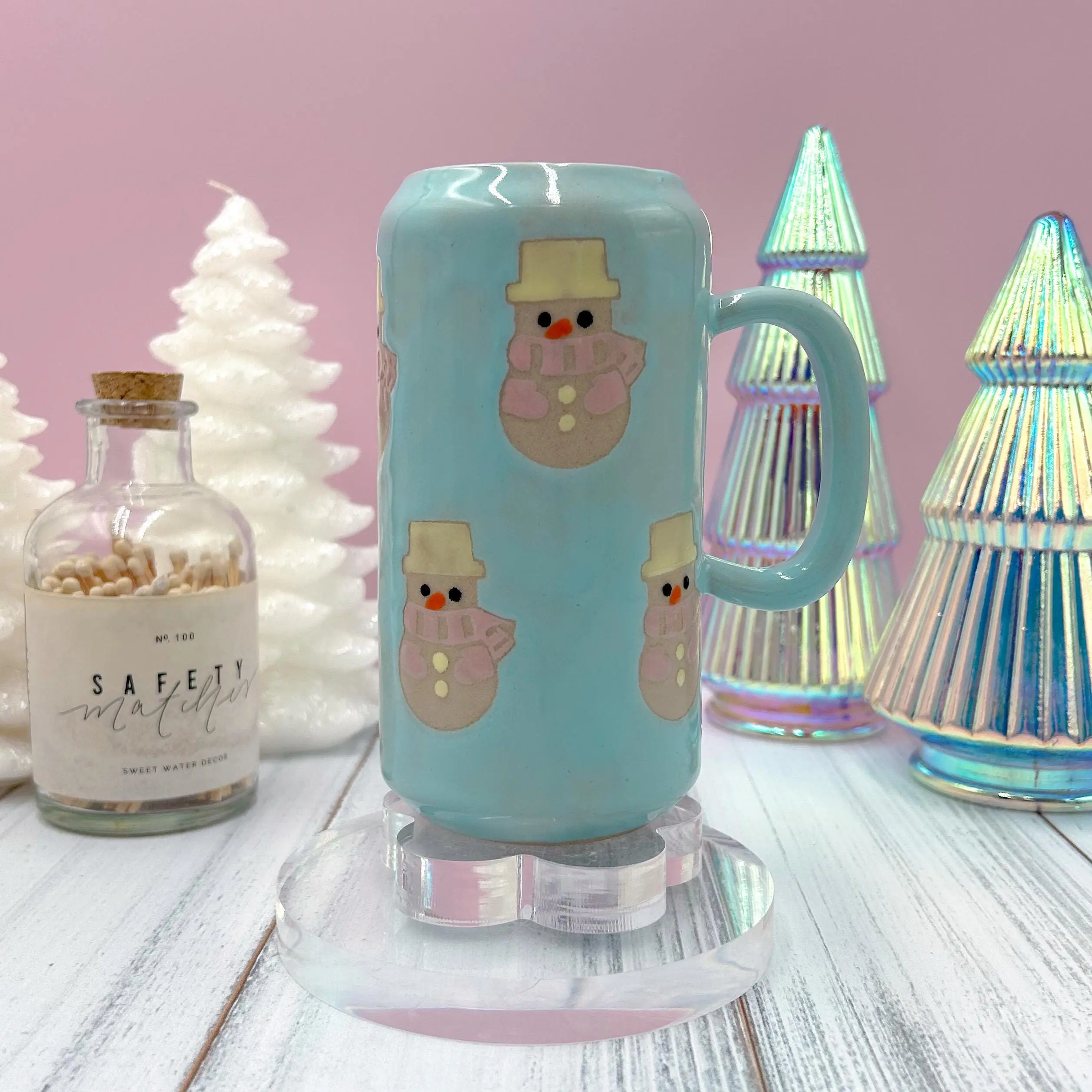 ❄️The Snowmen are an over glaze that’s fired on top of a food safe clear glaze, making it so the designs will never become damaged or flake off.
