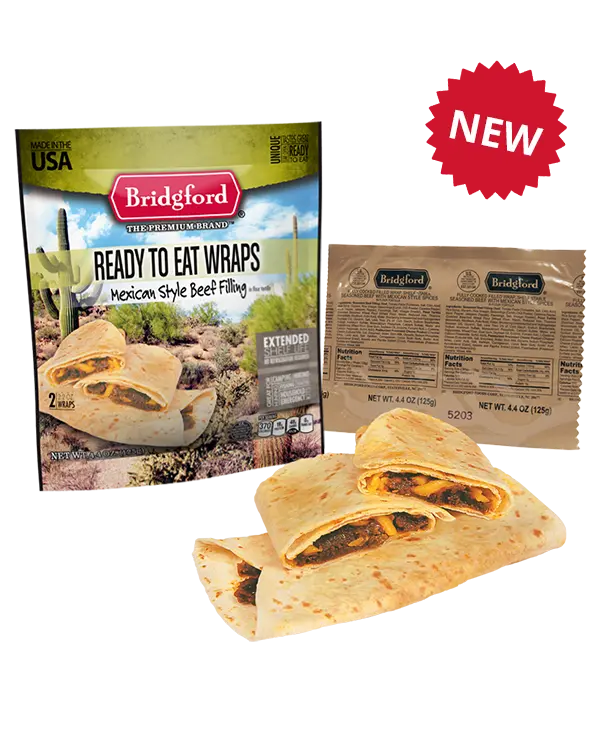 A new and exciting twist on the shelf-stable meal – try our Mexican Style Beef filling wrapped in a flour tortilla!