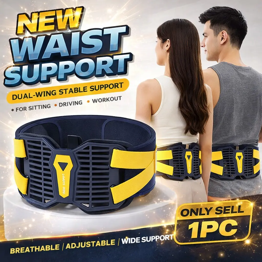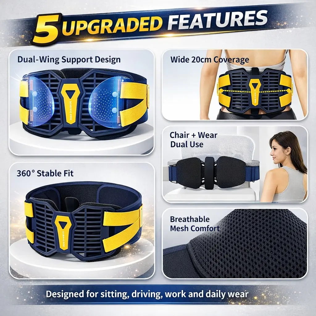 Adjustable Waist Support Belt for Men & Women, Dual-Wing Back Support Strap for Sitting, Driving, Desk Work, Travel & Workout, Breathable Mesh, 360° Wraparound Fit, Wide Coverage, One Size Daily Comfort