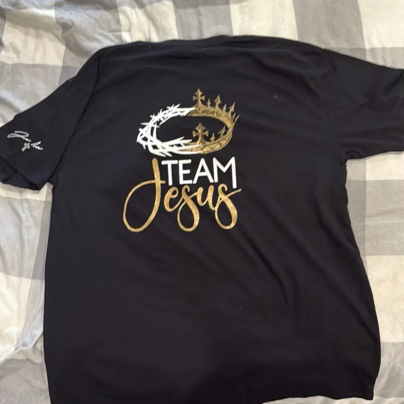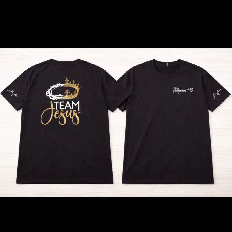 Team Jesus Shirts come with a unique signature autograph sleeve. This design adds a personal touch to your wardrobe. Perfect for those who want to express their faith stylishly. The shirt is a great choice for casual wear or special occasions.