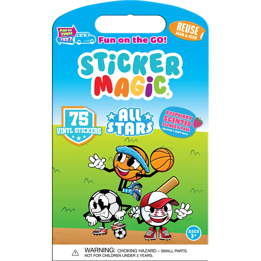 Sticker Magic™ turns creative play into a scented, reusable adventure. Each set includes a themed activity scene, 75 reusable vinyl stickers, and scratch-and-sniff areas on both the cover and activity page for an extra sensory surprise.