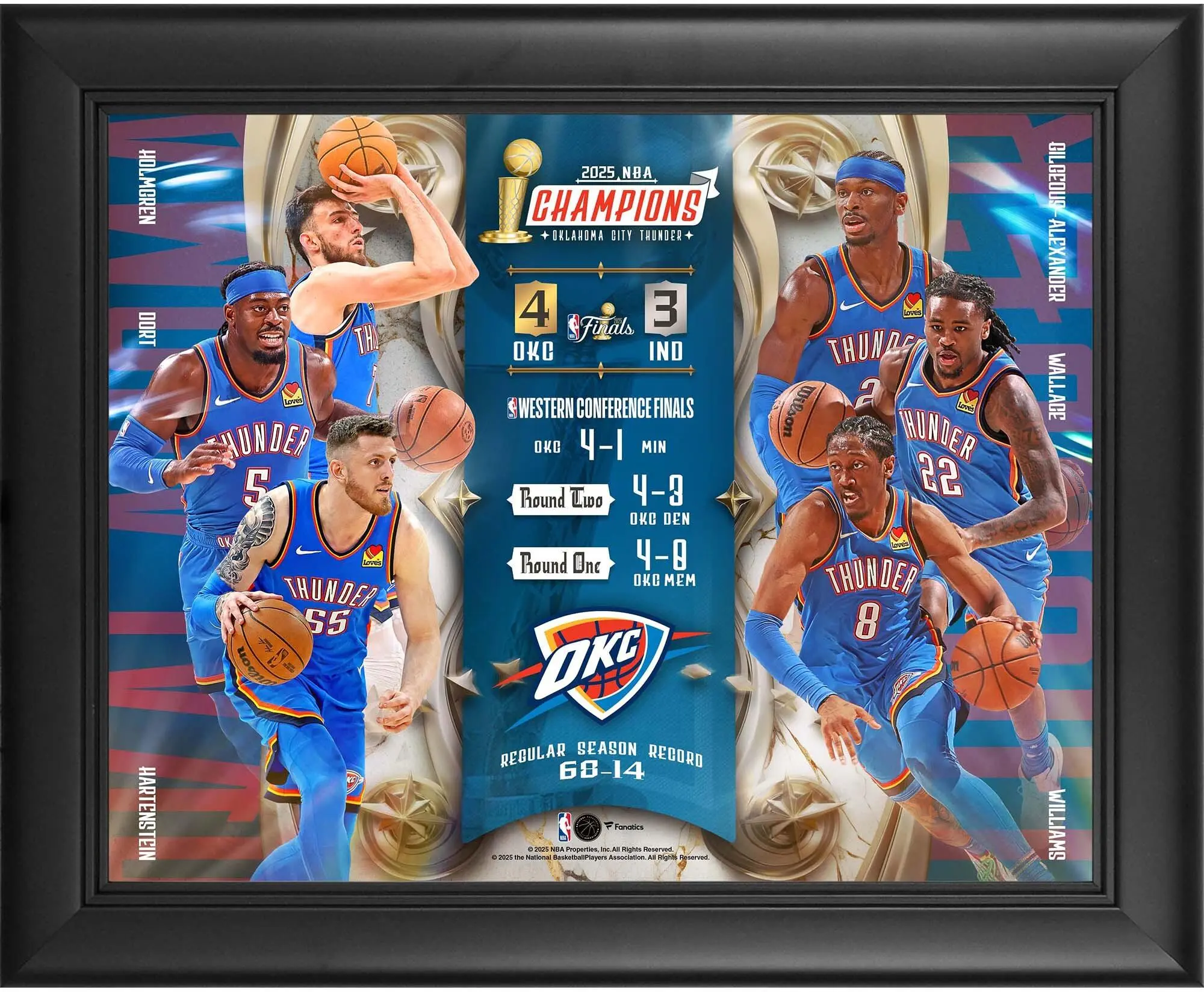 Oklahoma City Thunder Framed 13\" x 16\" 2025 NBA Finals Champions Collage If a product is unsigned or non game-used, a hologram will not be included memorabilia. Oklahoma City Thunder memorabilia.