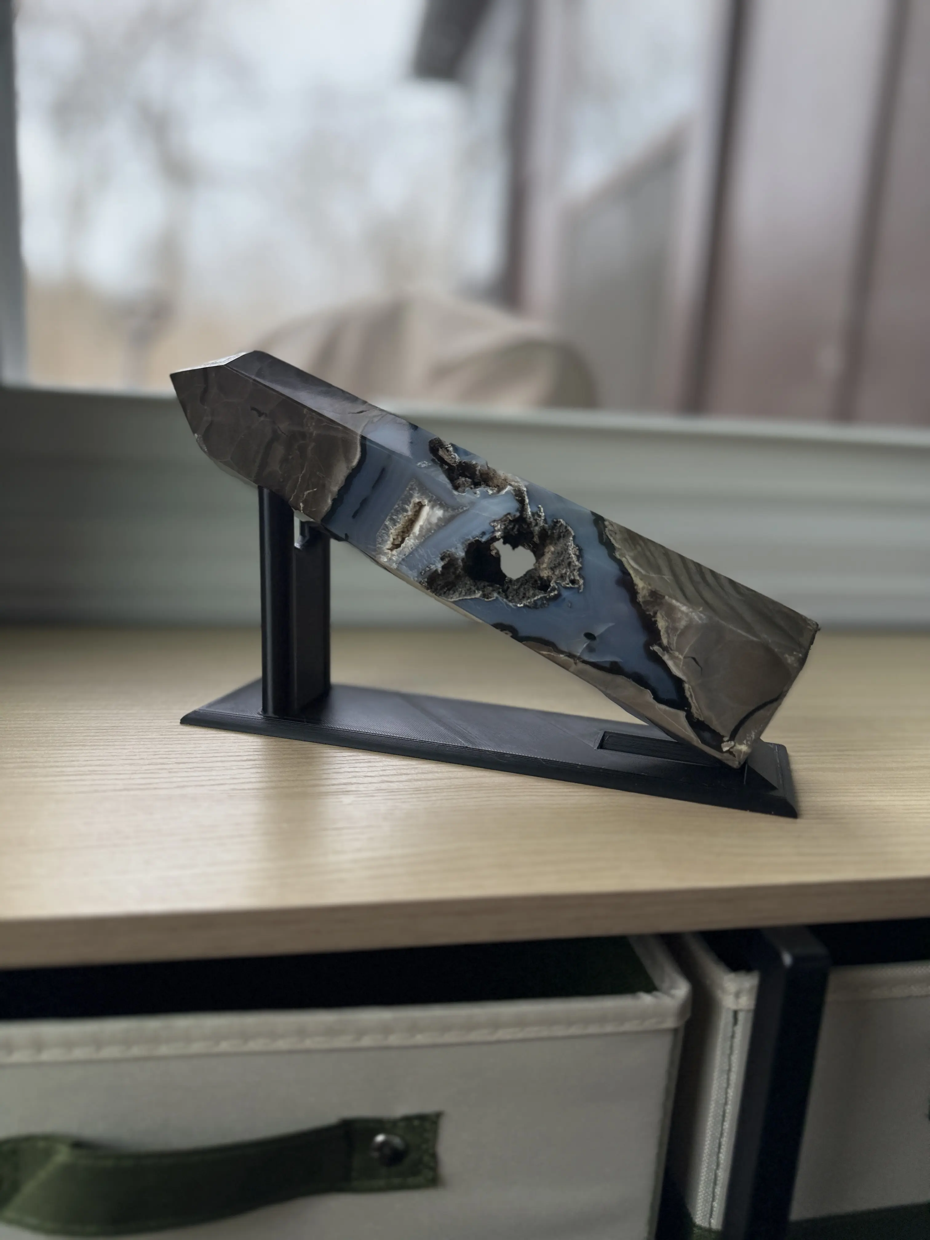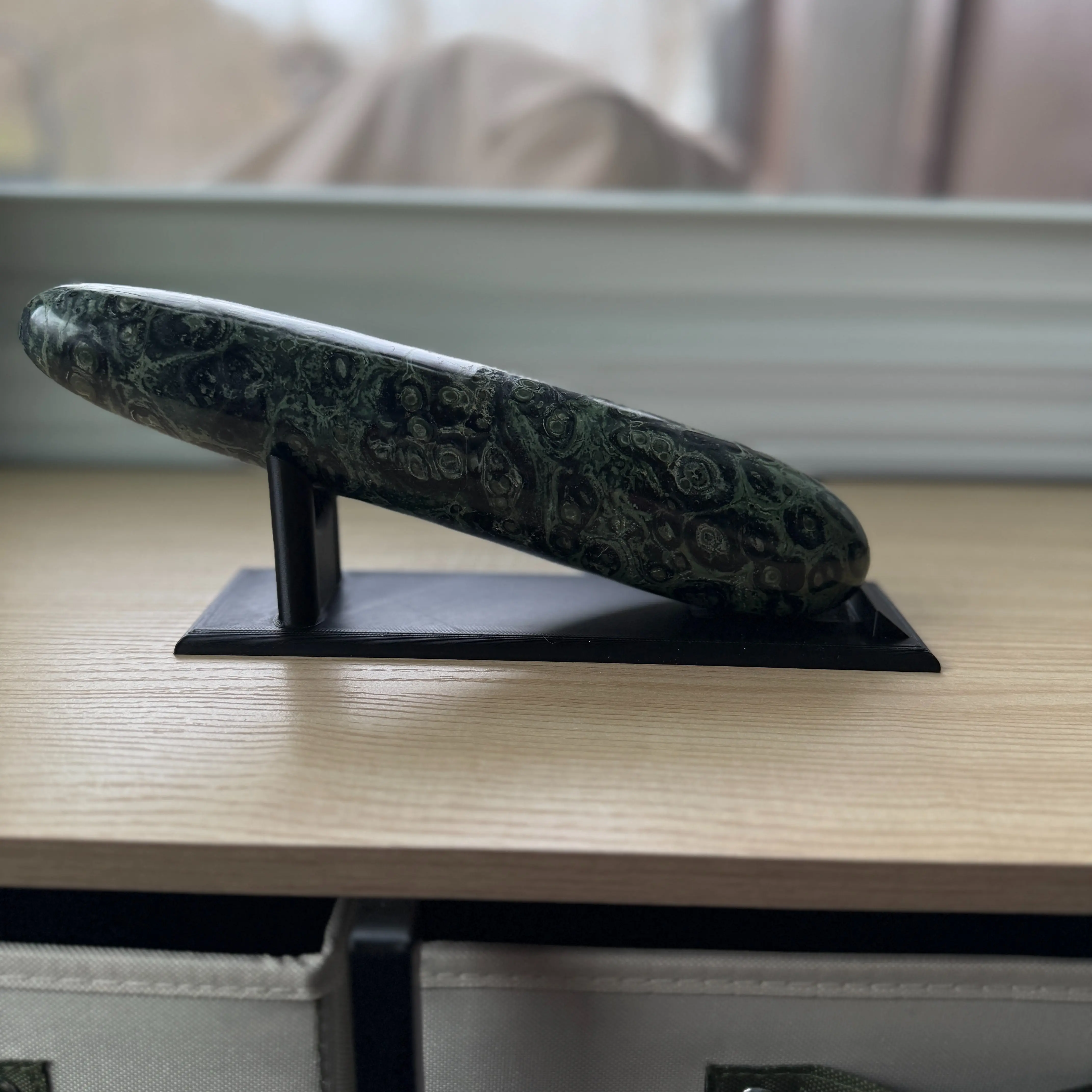 This 3d Printed stand allows for easier display of your longer and larger mineral and crystal towers.