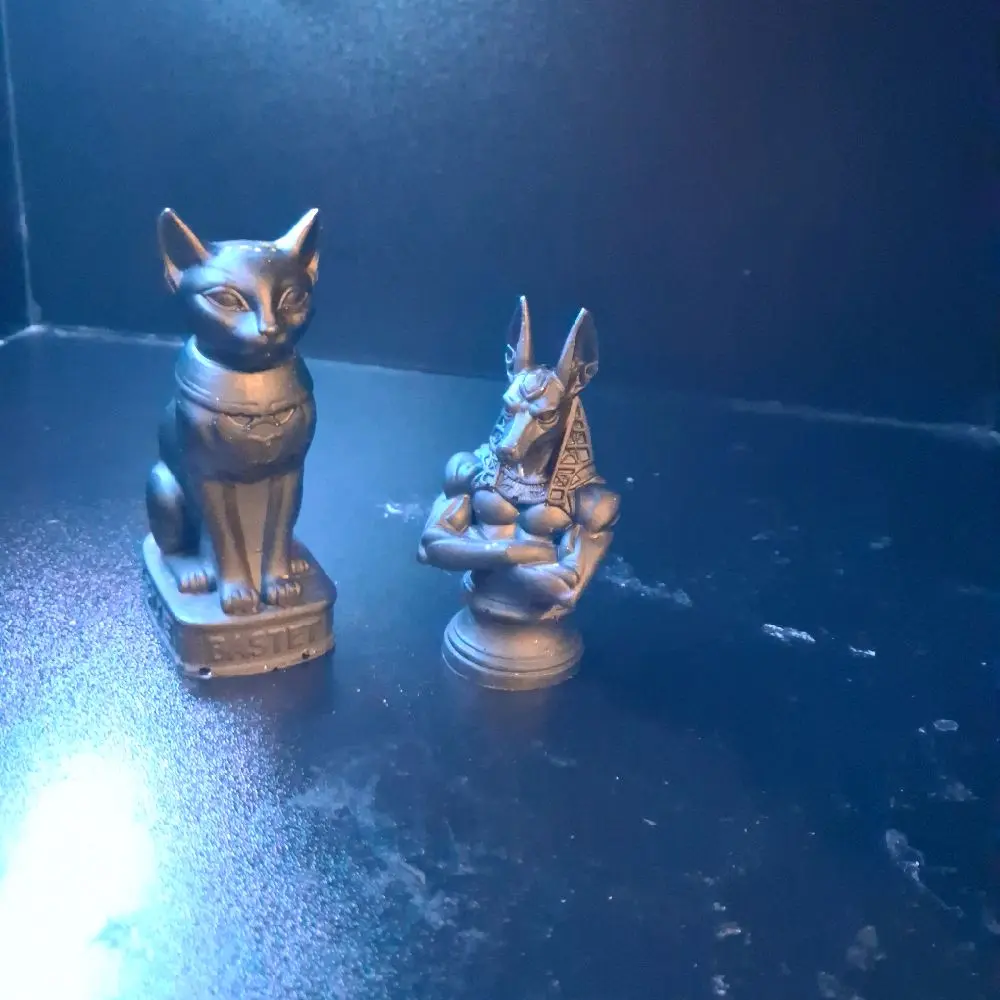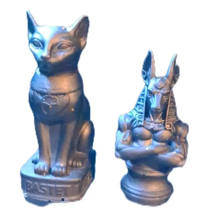 Discover the Bastet and Anubis Statues, perfect for Egyptian-themed decor. These figurines bring a touch of ancient mystique to any space. Ideal for home decor enthusiasts, they add a unique flair to your interior. Each statue is a detailed representation of these iconic Egyptian deities.