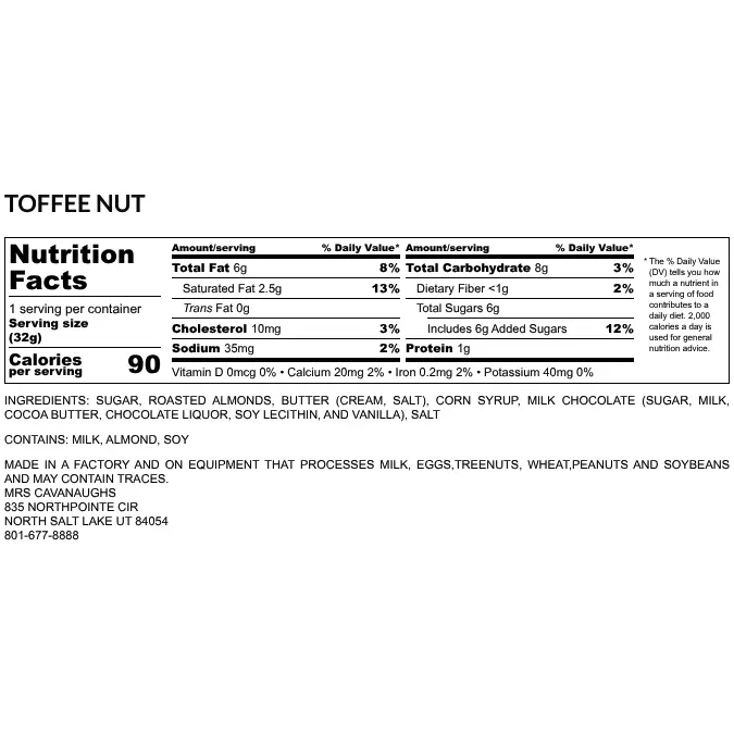 Discover the delight of Mrs. Cavanaugh's Milk Chocolate Covered English Toffee.