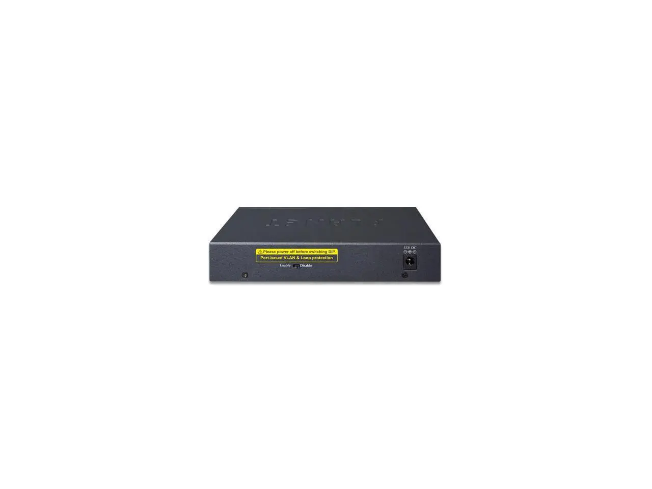 The GSD-604HP features “Port-based VLAN and Loop Protection” whose ports can be isolated from each other via one DIP switch. This can help to prevent the IP camera’s multicast or broadcast storm from influencing each other. Even more, the GSD-604HP can block and protect the loop network storm from the client, thus fully meeting the requirements of the IP surveillance systems and Ethernet projects. RJ45 Interface 6 10/100/1000Mbps Gigabit Ethernet ports 4 ports support 54V DC power to PoE powered device Power over Ethernet Complies with IEEE 802.3 af/at Power over Ethernet end-span PSE Up to 4 IEEE 802.3 af/at devices powered Supports PoE power up to 30 watts for each PoE port 65-watt PoE budget Auto detects powered device (PD) Circuit protection prevents power interference between ports Remote power feeding up to 100m Switching Hardware based 10/100/1000Mbps auto-negotiation and auto MDI/MDI-X Flow control for full duplex operation and back pressure for half duplex operation 9216 bytes jumbo packet size support Integrates address look-up engine, supporting 8K absolute MAC addresses Automatic address learning and address aging Supports port-based VLAN and loop protection Hardware LED indicators for PoE ready and LINK/ACT One 55V DC power jack Connections Total Ports 6 gigabit ethernet 802.3 af/at POE Ports 4 POE+ Fans No Fans Installation Switch Type Unmanaged Rack Ears None – small form factor 1U Rack Space 6.3 ? x 3.6 ? x 1.1 ? POE Specs Total Watt Capability 65 Watts Performance Port Speed Gigabit Backplane 12Gbps / non-blocking