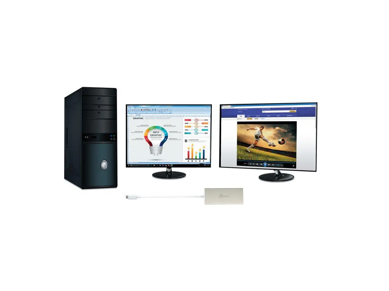 ·The USB-C® Dual HDMI™ Mini Dock provides extra connectivity for your USB-C® computer, featuring data transfer, power delivery and video displays. Easily add two additional USB™ computer peripherals, two HDMI™ monitors, and a Gigabit Ethernet connection through your USB-C® port. When connected to a power source, the USB-C® input charging port allows you to continue charging your laptop or smartphone. Its compact and lightweight design, making it great for use on the go.Dual Display HDMI™ 4K + 2KAllows you to add two additional monitors/displays to increase your efficiency at work through your USB-C™ port. Extend your visual workplace with excellent dual-video HDMI™.Power DeliveryCharge your laptop/cellphone, connect multiple peripherals and transfer data at the same time.Extra Connectivity for Your ComputerUSB™ 3.0, Ethernet, Power Delivery and 2 HDMI™ video ports over a single USB-C™ connection. Connect to a computer or tablet with a USB-C™ port.5 Gbps Transfer Speed2-Port USB™ 3.0 supports transfer speeds at 5 Gbps.Maximum USB-C™ CompatibilitySupports all USB-C™ devices: Apple®, Dell®, HP®, Lenovo®, Microsoft®, etc.Small, Compact, and LightweightPerfect for on-the-go.Cutting-Edge DesignThe advanced heat-eliminating design makes the JCD381 the perfect solution for expanding virtually any laptop into a full-sized workstation without the worry of overheating.More from the Manufacturer