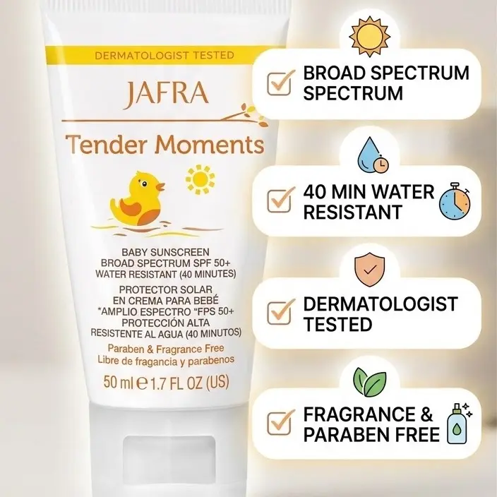Tender Moments Baby Sunscreen Broad Spectrum SPF 50+ Water Resistant 80 Minutes 50ml Paraben & Fragrance Free