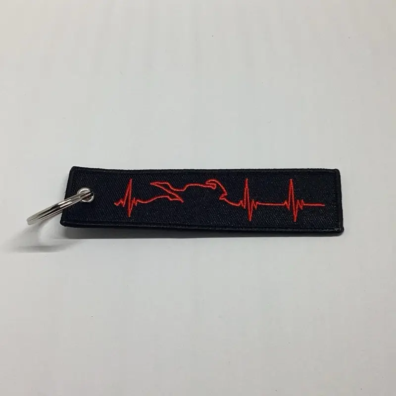 This black and red jet tag is tailored for motorcycle lovers. The red heartbeat design adds a unique touch. The silver keychain ensures your keys are always within reach. Ideal for those who appreciate both style and functionality in their accessories.