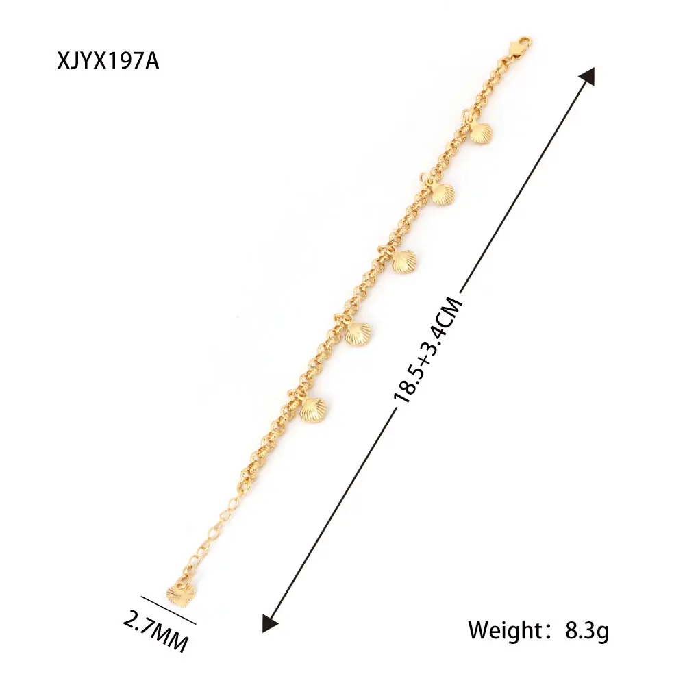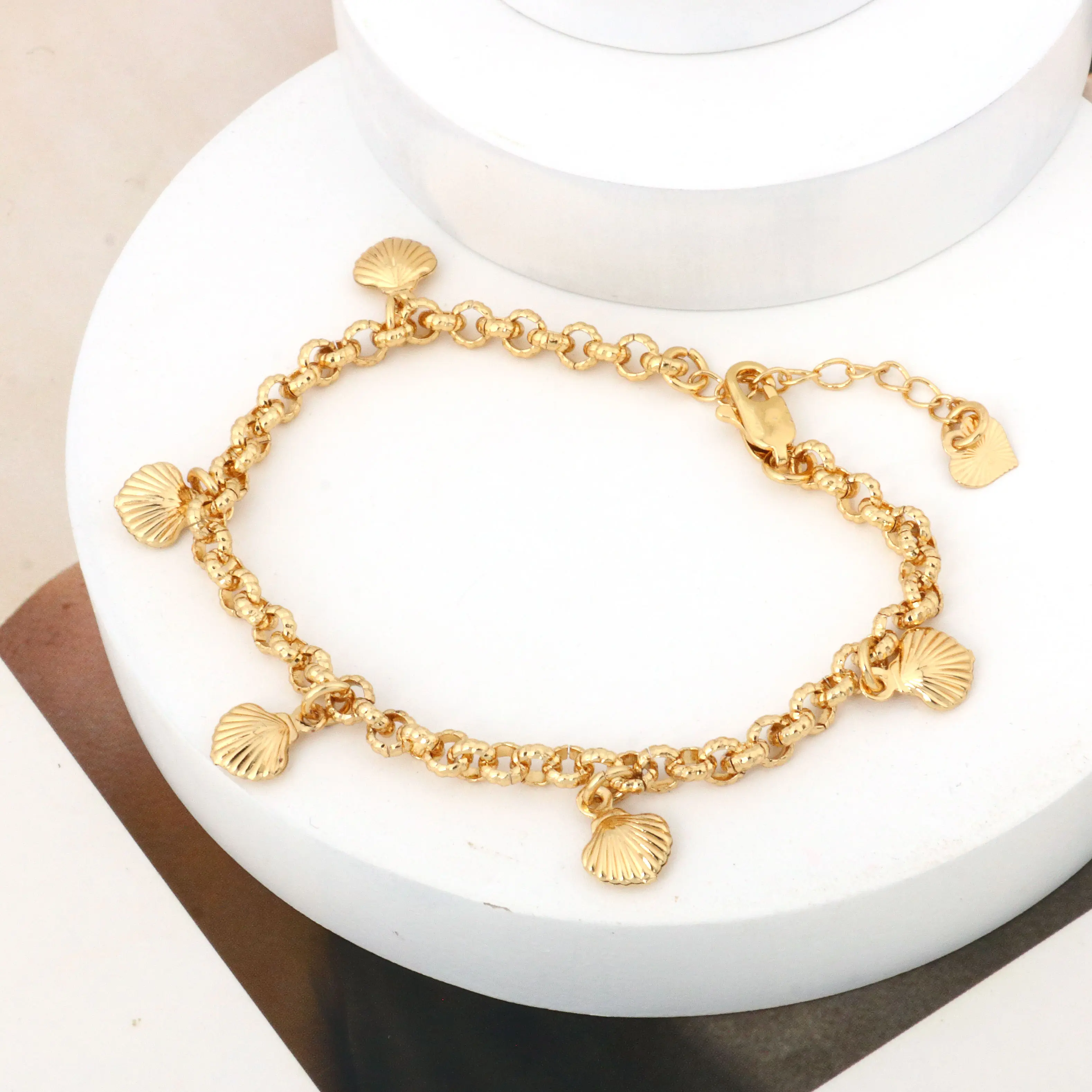 Conchita Summer Beach Jewelry 20K Gold Plated Shell Pendant Bead Chain Bracelet for Women