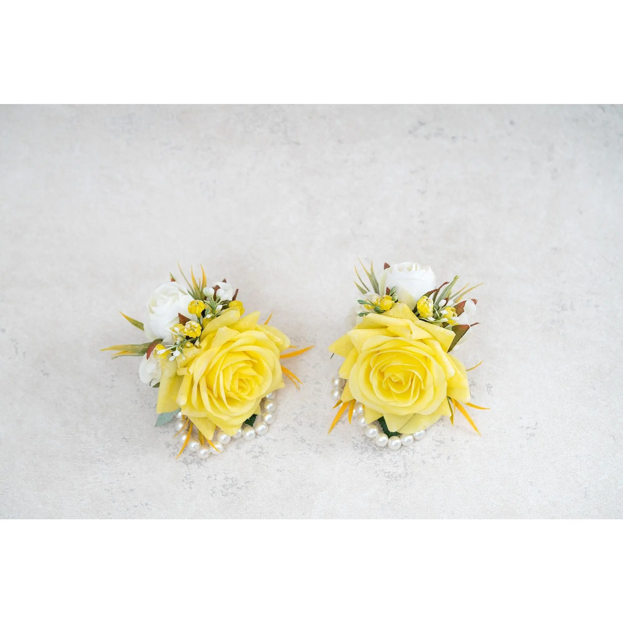❤This yellow corsage is made with silk rose flowers. The price includes one corsage or one boutonniere.The ribbon color can be customized, and we offer complimentary ribbon printing services.❤ Dimension: 3.15 inches in Diameter❤ Lovingly crafted with real touch flowersThis romantic-looking, lifelike bouquet is crafted to closely mimic the look and feel of fresh blooms. It offers exceptional elasticity, flexibility, and vibrant color gradations, making it the premium choice among artificial flowers.❤ ColorYellow❤ Versatile corsage for Weddings, Events & Home DecorThe foam corsage is an ideal choice for wedding flower decorations and home decor. The realistic, delicate petals add elegance and charm, making it perfect for weddings, special events, or even as a beautiful accent in your home.❤Matching bouquets, boutonnieres...All matching items are available, including boutonnieres, corsages, chair decorations, swags, hair accessories, and home decorations. Please message us for a quote, or Email us at coutureblooms.care@gmail.com. We would love to work with your budget and do custom wedding packages just for you!❤Change flower colorsIf you love this bouquet but want different colors, please send me a message, we'd be happy to provide a quote for you.❤PackagingWe will pack your flowers very carefully to ensure they will be delivered safely and in perfect shape.❤ShippingTo better serve you and save your time, we use our private shipping method as the default for most orders: US Addresses: Estimated delivery in 2-5 days UK & European Addresses: Estimated delivery in 5-15 days Australia & Canada Addresses: Estimated delivery in 10-25 daysFor urgent orders, we offer FedEx and DHL global express shipping.***Our home base is in Orange County, California, and we source from global manufacturing partners to ensure the highest quality of our products.Feel free to reach out with any additional questions. Your satisfaction is our top priority.***All items and photos are copyrighted and belong exclusively to Couture Blooms.