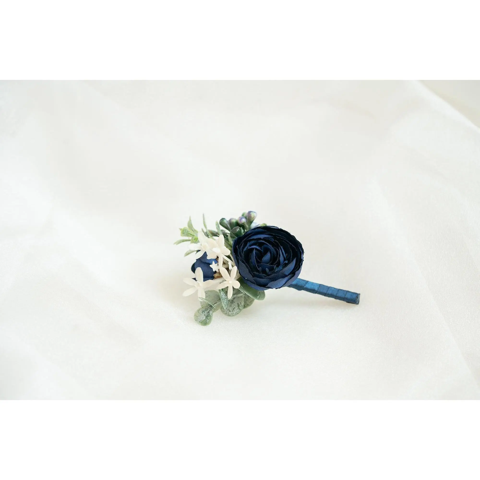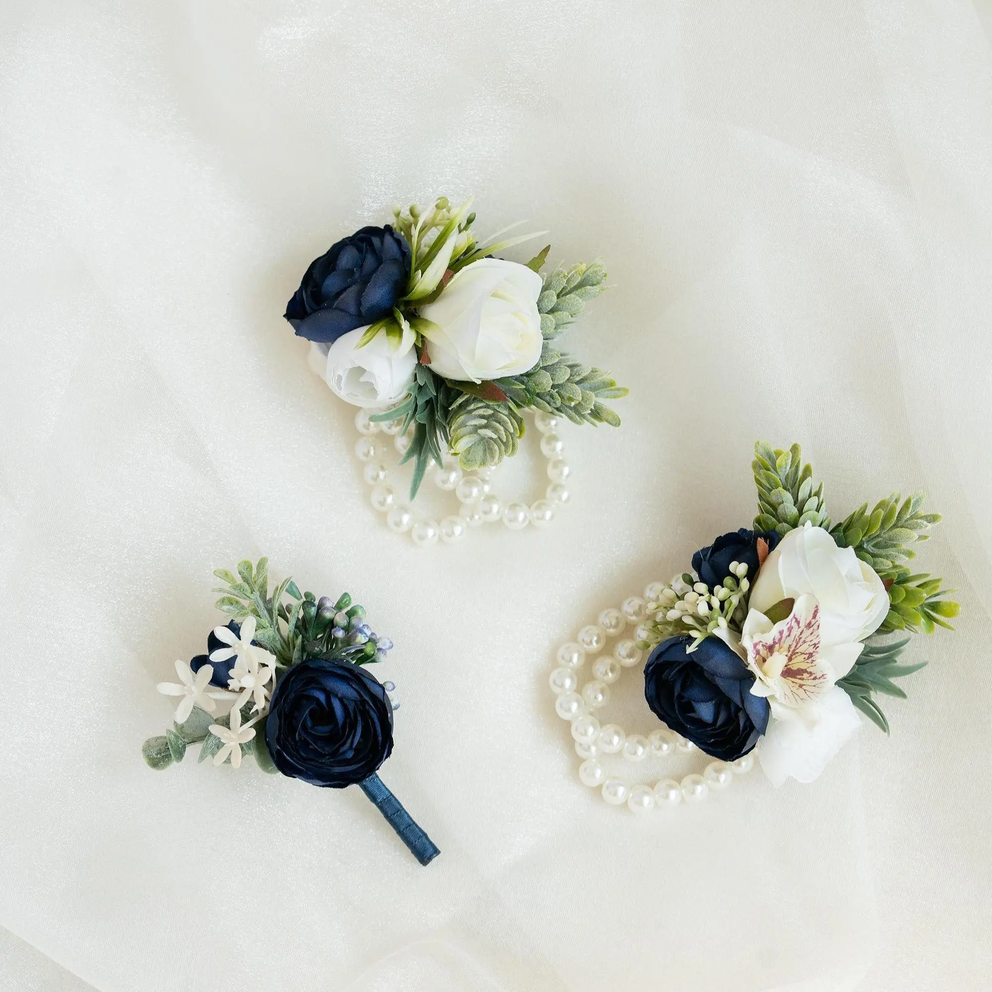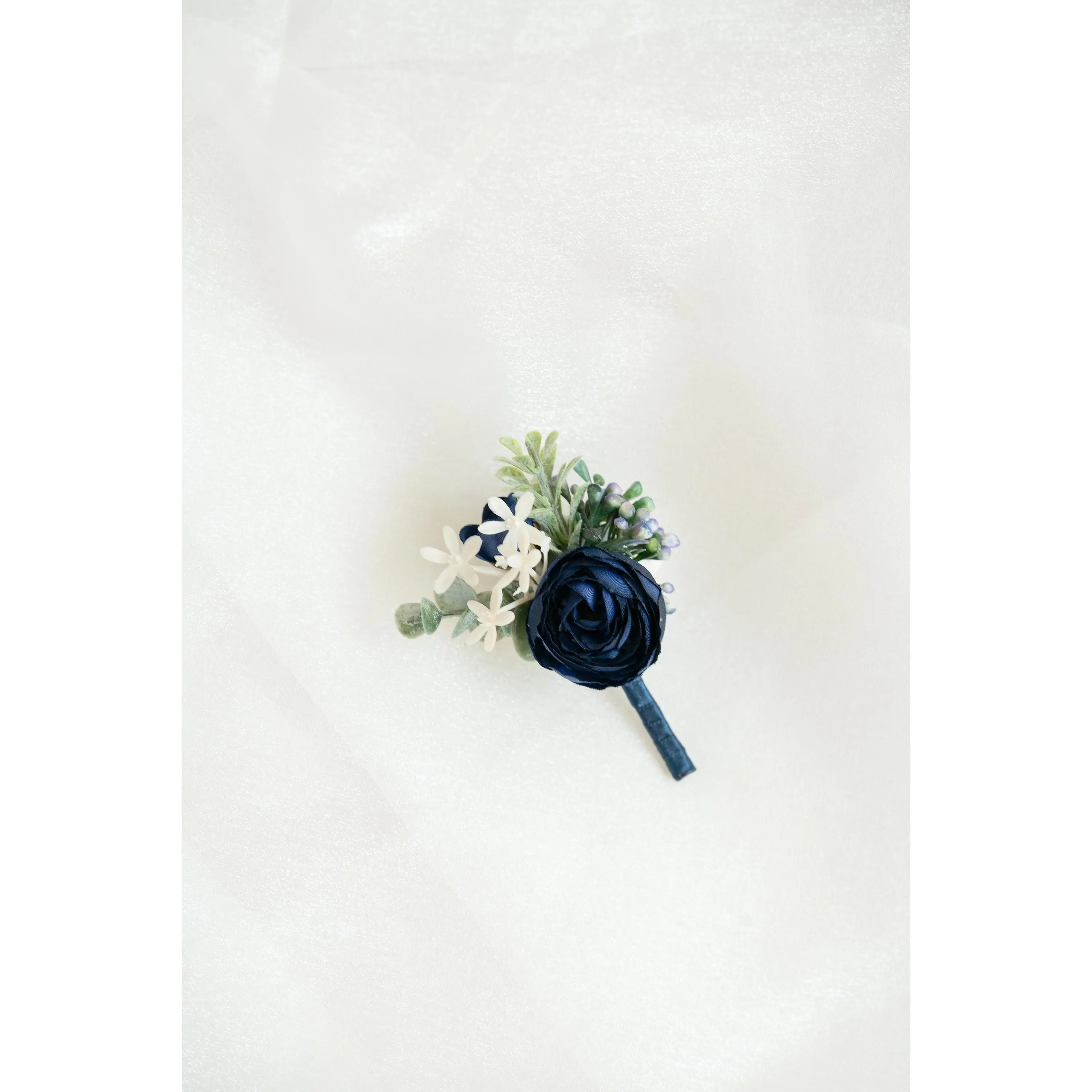 ❤This corsage is made with navy blue silk ranunculus and rose buds, dusty green pine cone, decorated with a hint of plastic berry and grey green foliage. You could choose the option to includes an orchid flower. The price includes one corsage or one boutonniere.The ribbon color can be customized, and we offer complimentary ribbon printing services.❤ Dimension: 3.1 inches in Diameter❤ Lovingly crafted with real touch flowersThis romantic-looking, lifelike bouquet is crafted to closely mimic the look and feel of fresh blooms. It offers exceptional elasticity, flexibility, and vibrant color gradations, making it the premium choice among artificial flowers.❤ ColorNavy blue❤ Versatile corsage for Weddings, Events & Home DecorThe silk corsage is an ideal choice for wedding flower decorations and home decor. The realistic, delicate petals add elegance and charm, making it perfect for weddings, special events, or even as a beautiful accent in your home.❤Matching bouquets, boutonnieres...All matching items are available, including boutonnieres, corsages, chair decorations, swags, hair accessories, and home decorations. Please message us for a quote, or Email us at coutureblooms.care@gmail.com. We would love to work with your budget and do custom wedding packages just for you!❤Change flower colorsIf you love this bouquet but want different colors, please send me a message, we'd be happy to provide a quote for you.❤PackagingWe will pack your flowers very carefully to ensure they will be delivered safely and in perfect shape.❤ShippingTo better serve you and save your time, we use our private shipping method as the default for most orders: US Addresses: Estimated delivery in 2-5 days UK & European Addresses: Estimated delivery in 5-15 days Australia & Canada Addresses: Estimated delivery in 10-25 daysFor urgent orders, we offer FedEx and DHL global express shipping.***Our home base is in Orange County, California, and we source from global manufacturing partners to ensure the highest quality of our products.Feel free to reach out with any additional questions. Your satisfaction is our top priority.***All items and photos are copyrighted and belong exclusively to Couture Blooms.