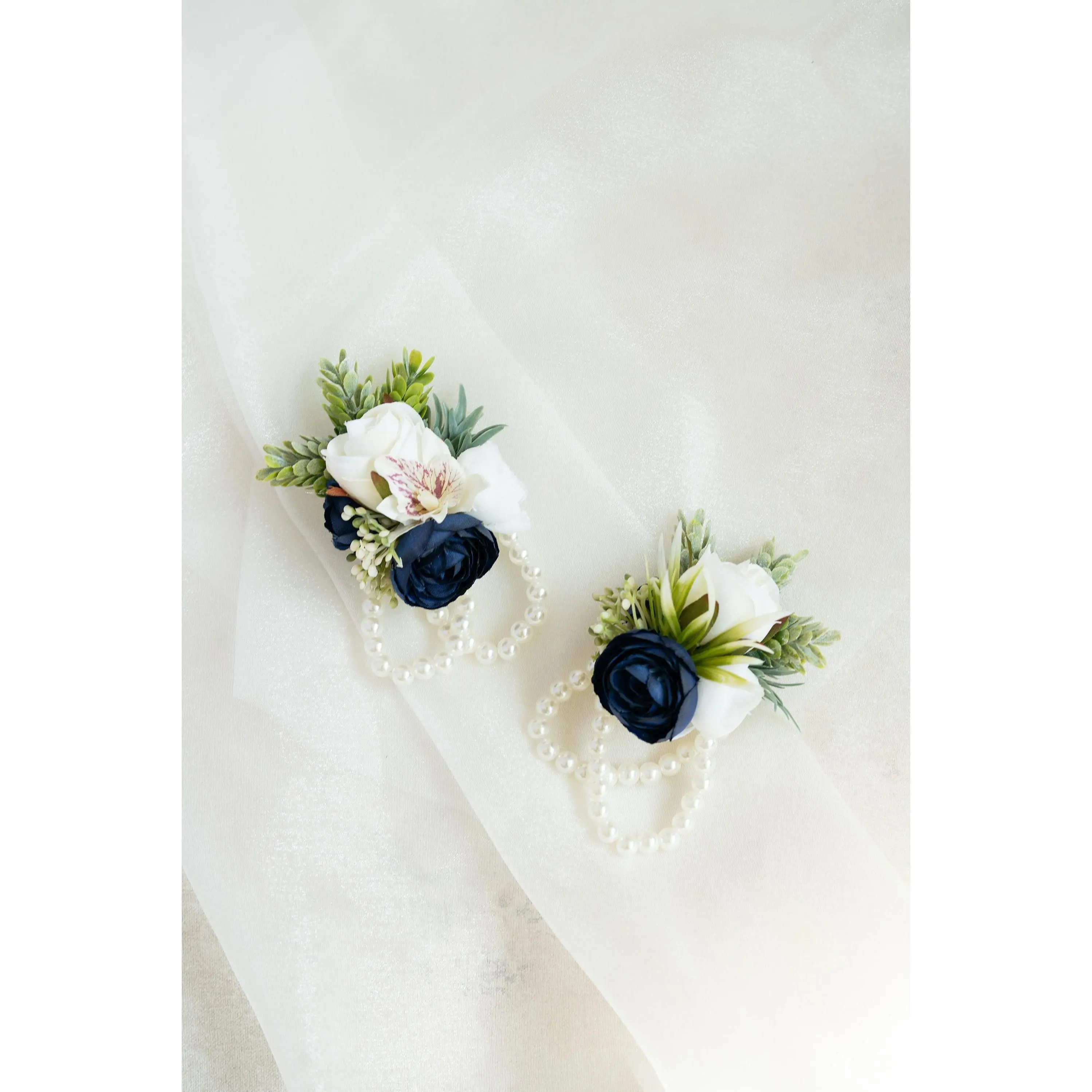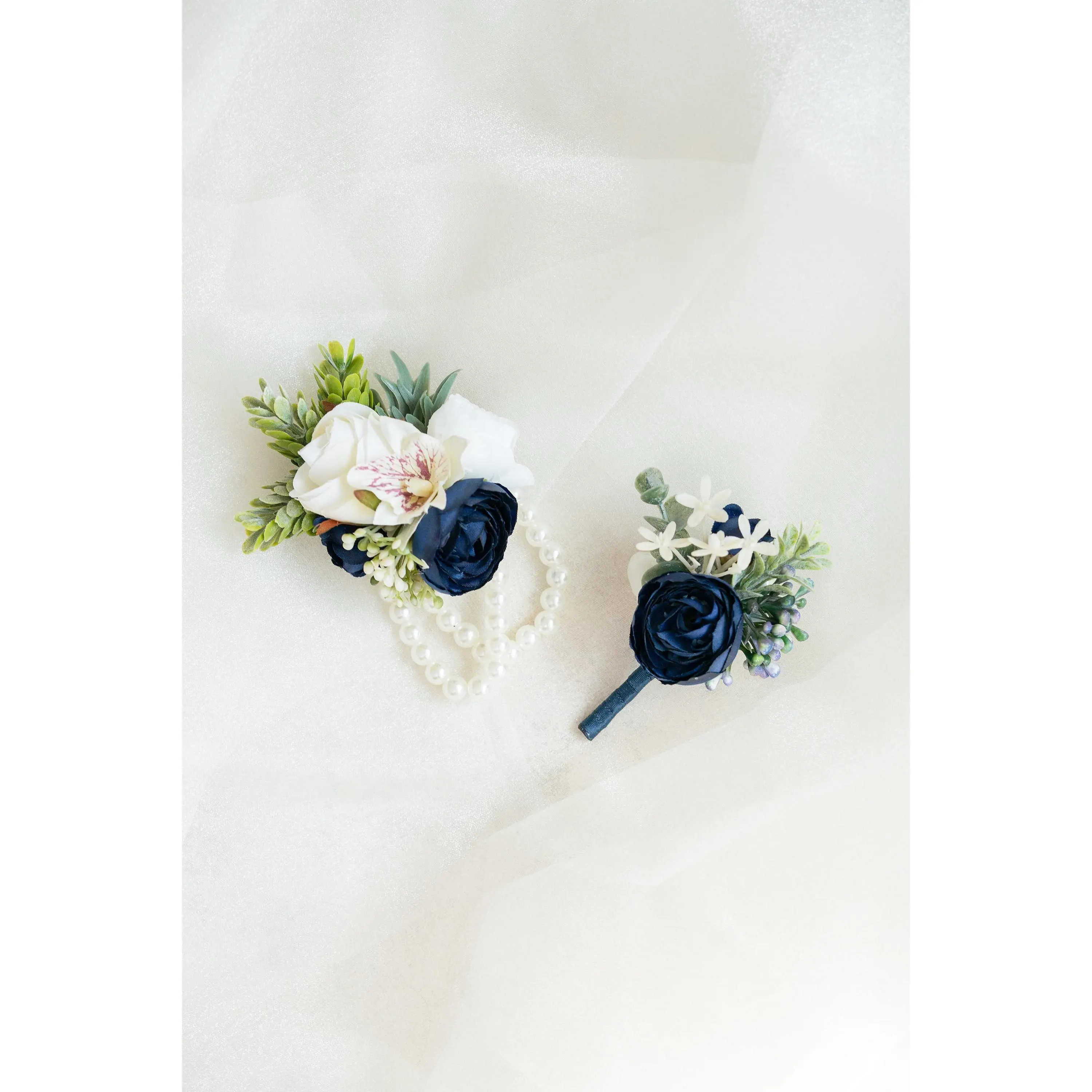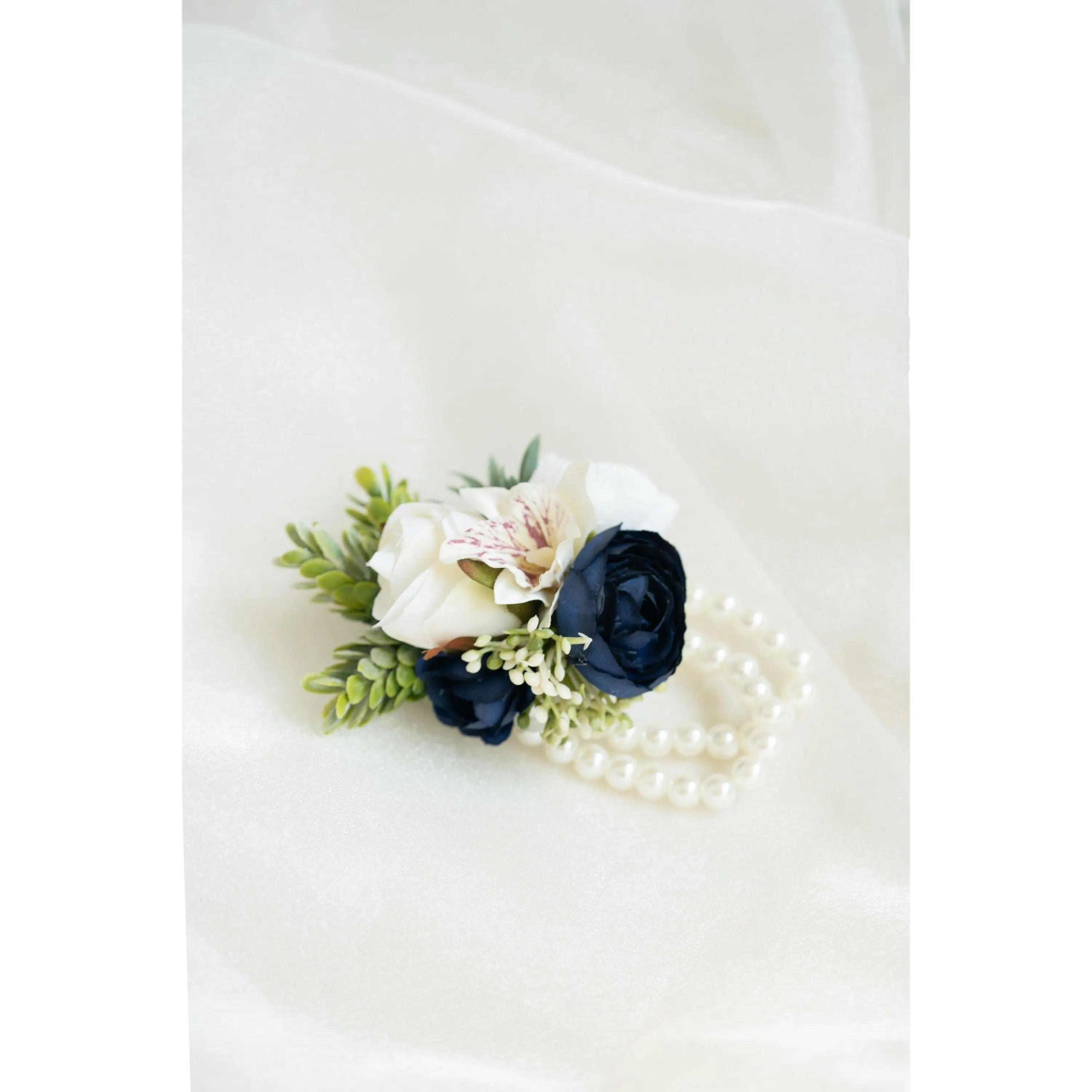 ❤This corsage is made with navy blue silk ranunculus and rose buds, dusty green pine cone, decorated with a hint of plastic berry and grey green foliage. You could choose the option to includes an orchid flower. The price includes one corsage or one boutonniere.The ribbon color can be customized, and we offer complimentary ribbon printing services.❤ Dimension: 3.1 inches in Diameter❤ Lovingly crafted with real touch flowersThis romantic-looking, lifelike bouquet is crafted to closely mimic the look and feel of fresh blooms. It offers exceptional elasticity, flexibility, and vibrant color gradations, making it the premium choice among artificial flowers.❤ ColorNavy blue❤ Versatile corsage for Weddings, Events & Home DecorThe silk corsage is an ideal choice for wedding flower decorations and home decor. The realistic, delicate petals add elegance and charm, making it perfect for weddings, special events, or even as a beautiful accent in your home.❤Matching bouquets, boutonnieres...All matching items are available, including boutonnieres, corsages, chair decorations, swags, hair accessories, and home decorations. Please message us for a quote, or Email us at coutureblooms.care@gmail.com. We would love to work with your budget and do custom wedding packages just for you!❤Change flower colorsIf you love this bouquet but want different colors, please send me a message, we'd be happy to provide a quote for you.❤PackagingWe will pack your flowers very carefully to ensure they will be delivered safely and in perfect shape.❤ShippingTo better serve you and save your time, we use our private shipping method as the default for most orders: US Addresses: Estimated delivery in 2-5 days UK & European Addresses: Estimated delivery in 5-15 days Australia & Canada Addresses: Estimated delivery in 10-25 daysFor urgent orders, we offer FedEx and DHL global express shipping.***Our home base is in Orange County, California, and we source from global manufacturing partners to ensure the highest quality of our products.Feel free to reach out with any additional questions. Your satisfaction is our top priority.***All items and photos are copyrighted and belong exclusively to Couture Blooms.