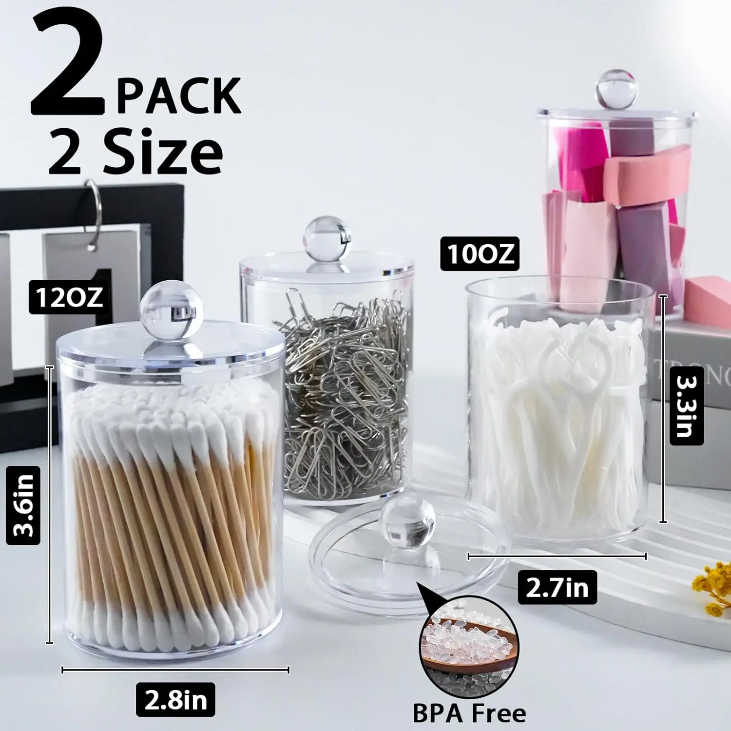 ·PRODUCT INCLUDES:Product includes 1 x 10 oz,1 x 12 oz cotton swab jars with lids, smooth edges, safe and unbreakable