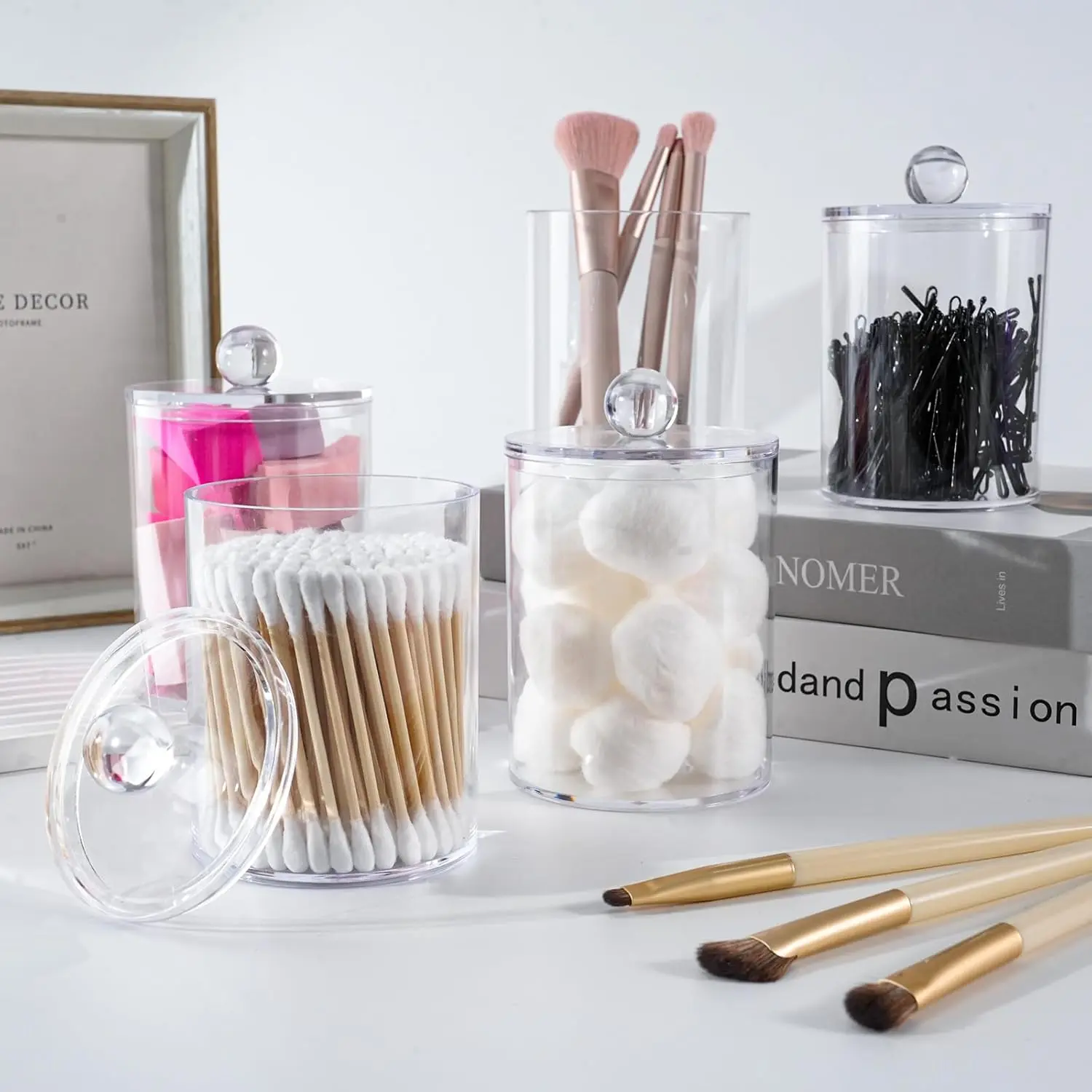 ·These jars are perfect for small items such as cotton swabs, cotton balls, cotton swabs, cotton swabs, flossing sticks, bath salts, hair bands, make-up brushes, beauty eggs, and many more small items that are very easy to store and remove