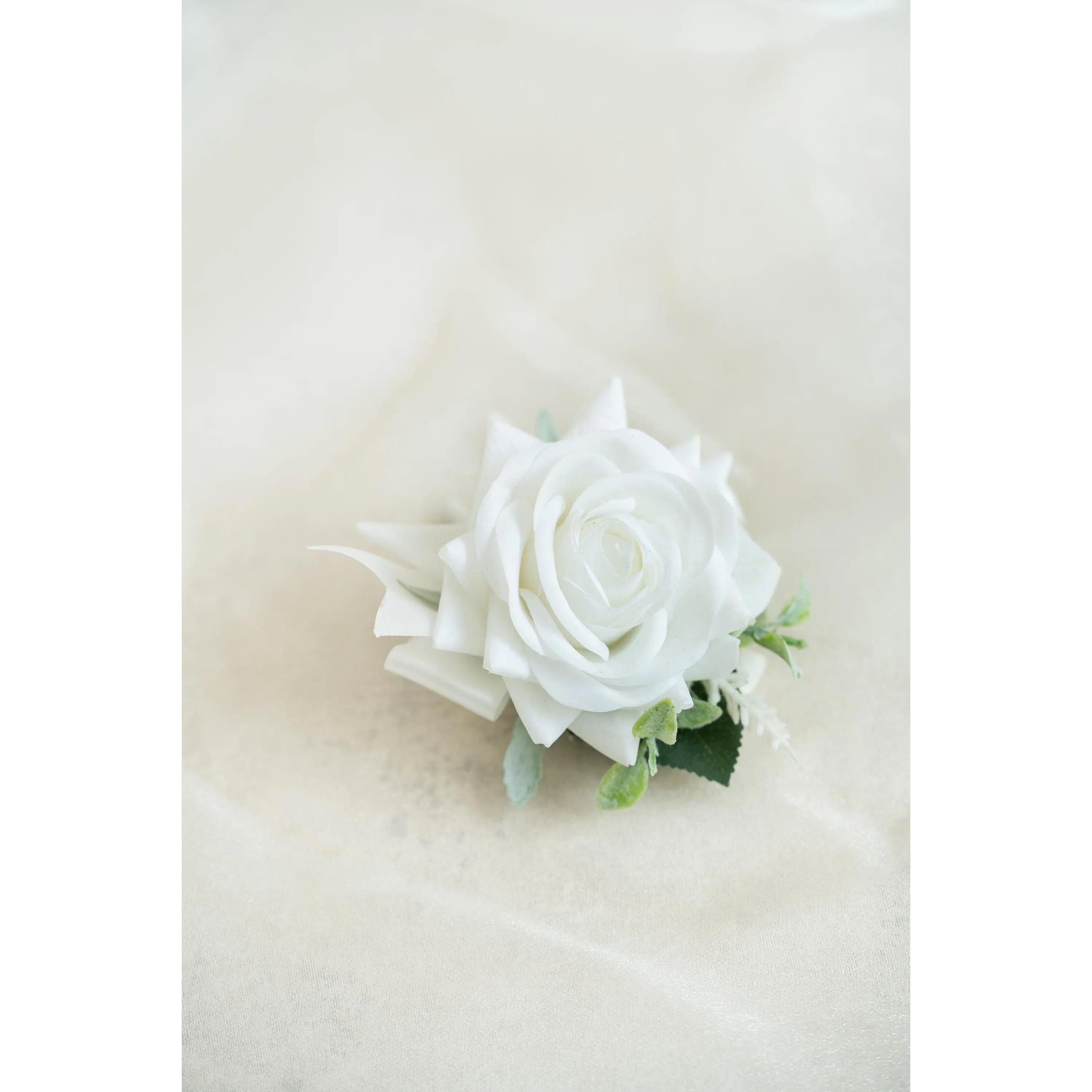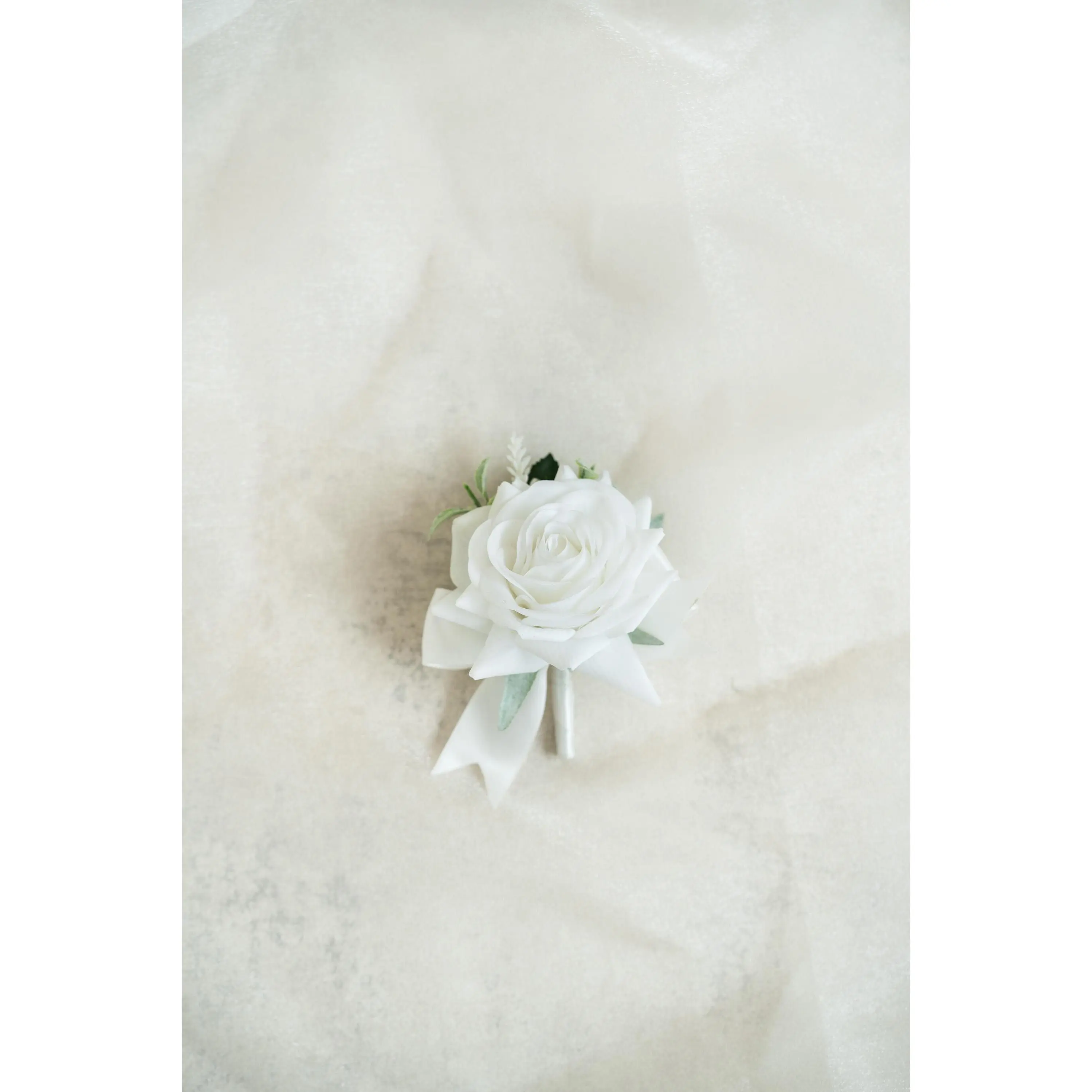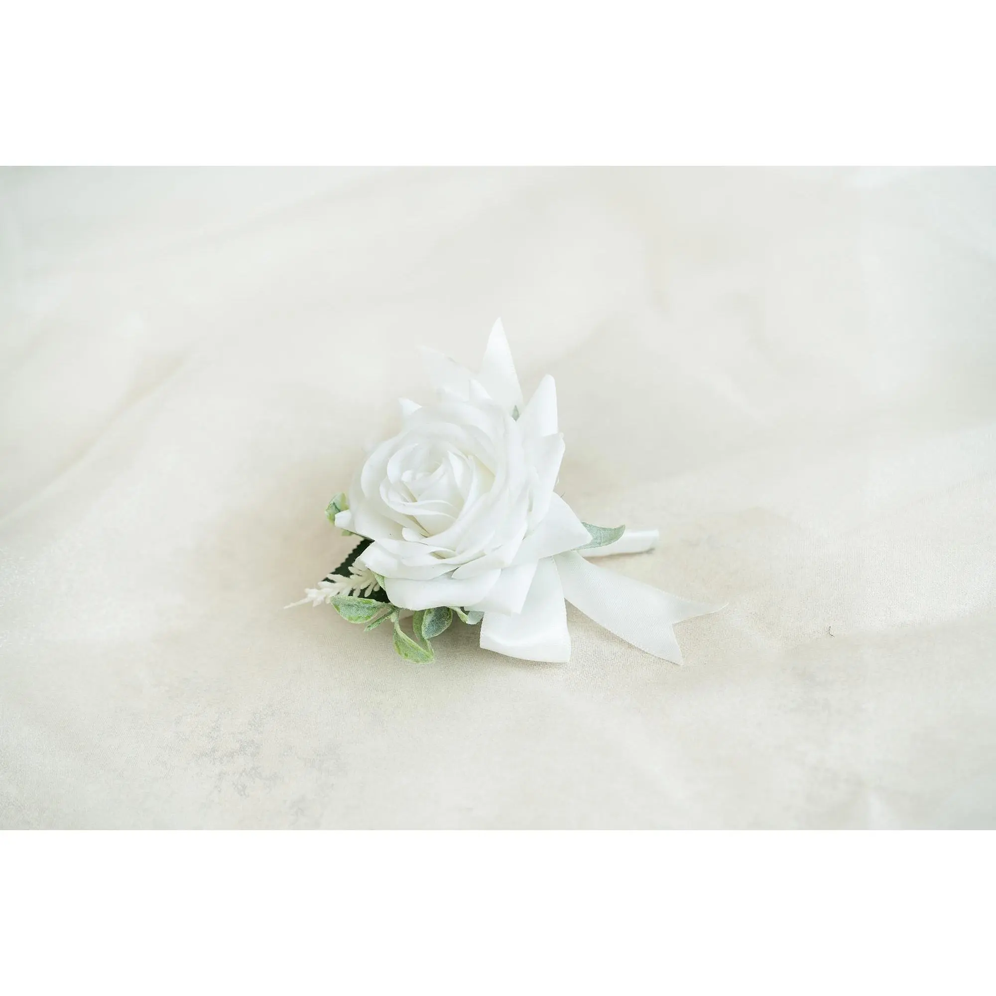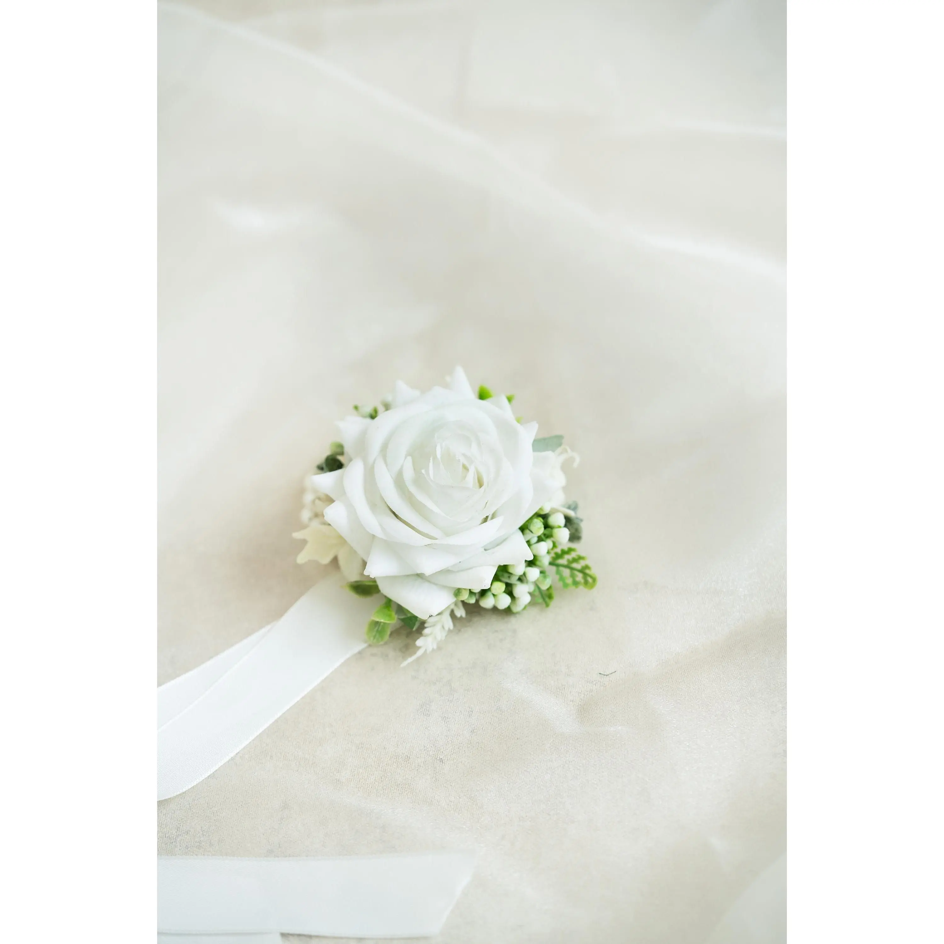 ❤This write corsage is made with real touch rose flowers and a hint of berries, fern and eucalyptus. The price includes one corsage or one boutonniere.The ribbon color can be customized, and we offer complimentary ribbon printing services.❤ Dimension: 4inches in Diameter❤ Lovingly crafted with real touch flowersThis romantic-looking, lifelike bouquet is crafted to closely mimic the look and feel of fresh blooms. It offers exceptional elasticity, flexibility, and vibrant color gradations, making it the premium choice among artificial flowers.❤ ColorWhite❤ Versatile corsage for Weddings, Events & Home DecorThe silk corsage is an ideal choice for wedding flower decorations and home decor. The realistic, delicate petals add elegance and charm, making it perfect for weddings, special events, or even as a beautiful accent in your home.❤Matching bouquets, boutonnieres...All matching items are available, including boutonnieres, corsages, chair decorations, swags, hair accessories, and home decorations. Please message us for a quote, or Email us at coutureblooms.care@gmail.com. We would love to work with your budget and do custom wedding packages just for you!❤Change flower colorsIf you love this bouquet but want different colors, please send me a message, we'd be happy to provide a quote for you.❤PackagingWe will pack your flowers very carefully to ensure they will be delivered safely and in perfect shape.❤ShippingTo better serve you and save your time, we use our private shipping method as the default for most orders: US Addresses: Estimated delivery in 2-5 days UK & European Addresses: Estimated delivery in 5-15 days Australia & Canada Addresses: Estimated delivery in 10-25 daysFor urgent orders, we offer FedEx and DHL global express shipping.***Our home base is in Orange County, California, and we source from global manufacturing partners to ensure the highest quality of our products.Feel free to reach out with any additional questions. Your satisfaction is our top priority.***All items and photos are copyrighted and belong exclusively to Couture Blooms.