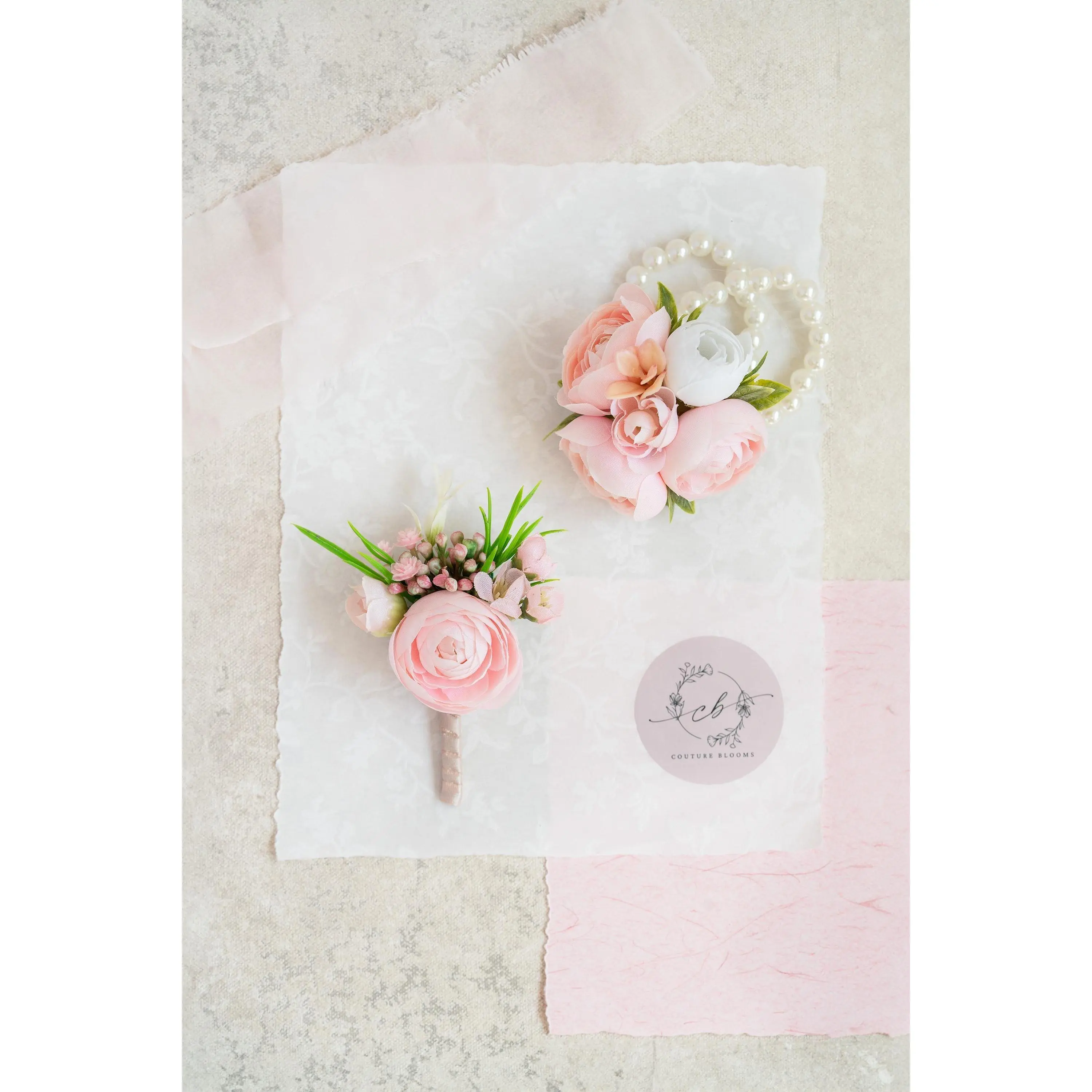 ❤ This pink corsage and boutonniere set is crafted with beautiful rose and ranunculus flowers, with a touch of succulent. The price includes either one corsage or one boutonniere. ❤ Dimension: Boutonniere: 4.3 inches in HeightCorsage: 2 inches * 4 inches❤ Lovingly crafted with silk rose buds and succulentThis romantic looking, lifelike corsage is crafted to closely mimic the look and feel of fresh blooms. It offers exceptional elasticity, flexibility, and vibrant color gradations, making them the premium choice among artificial flowers.❤ Colorlight pink❤ Versatile silk corsage for Weddings, Events & Home DecorThe silk corsage is an ideal choice for wedding flower decorations, and home decor. It's realistic, delicate petals add elegance and charm, making it perfect for weddings, special events, or even as a beautiful accent in your home.❤Matching bouquets, boutonnieres...All matching items are available, including boutonnieres, corsages, chair decorations, swags, hair accessories, and home decorations. Please message us for a quote, or Email us at coutureblooms.care@gmail.com. We would love to work with your budget and do custom wedding packages just for you!❤Change flower colorsIf you love this bouquet but want different colors, please send me a message, we'd be happy to provide a quote for you.❤PackagingWe will pack your flowers very carefully to ensure they will be delivered safely and in perfect shape.❤ShippingTo better serve you and save your time, we use our private shipping method as the default for most orders: US Addresses: Estimated delivery in 2-5 days UK & European Addresses: Estimated delivery in 5-15 days Australia & Canada Addresses: Estimated delivery in 10-25 daysFor urgent orders, we offer FedEx and DHL global express shipping.***Our home base is in Orange County, California, and we source from global manufacturing partners to ensure the highest quality of our products.Feel free to reach out with any additional questions. Your satisfaction is our top priority.***All items and photos are copyrighted and belong exclusively to Couture Blooms.