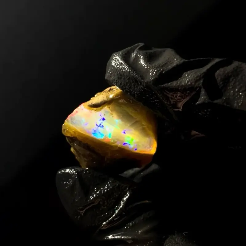 7 gram Ethiopia specimen opal milky white with colorful contra luz