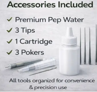 ·Accessories Included: One Premium pep water, 3 pen tips, 1 pen cartridge, 3 pokers for cartridge prep, organized and ready.