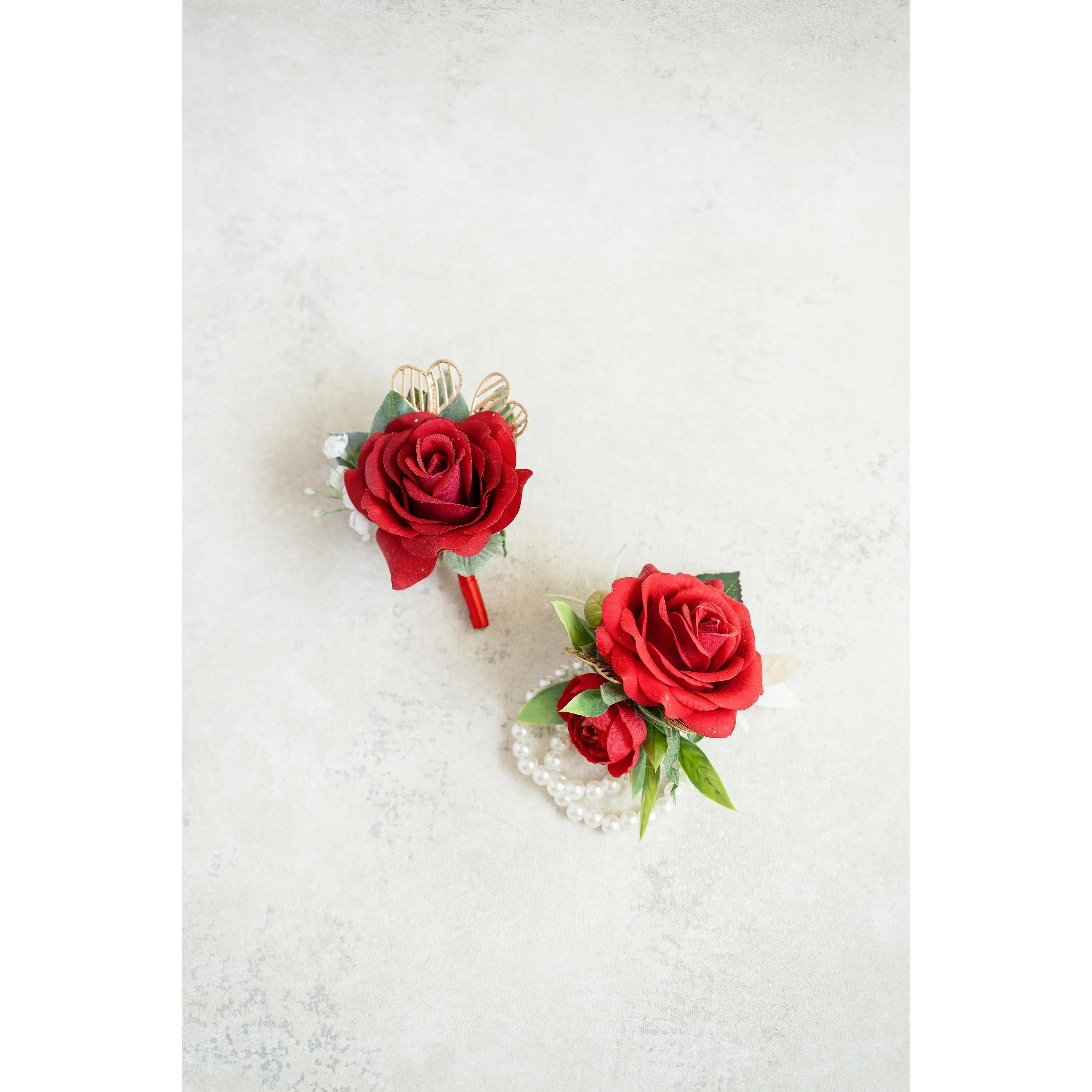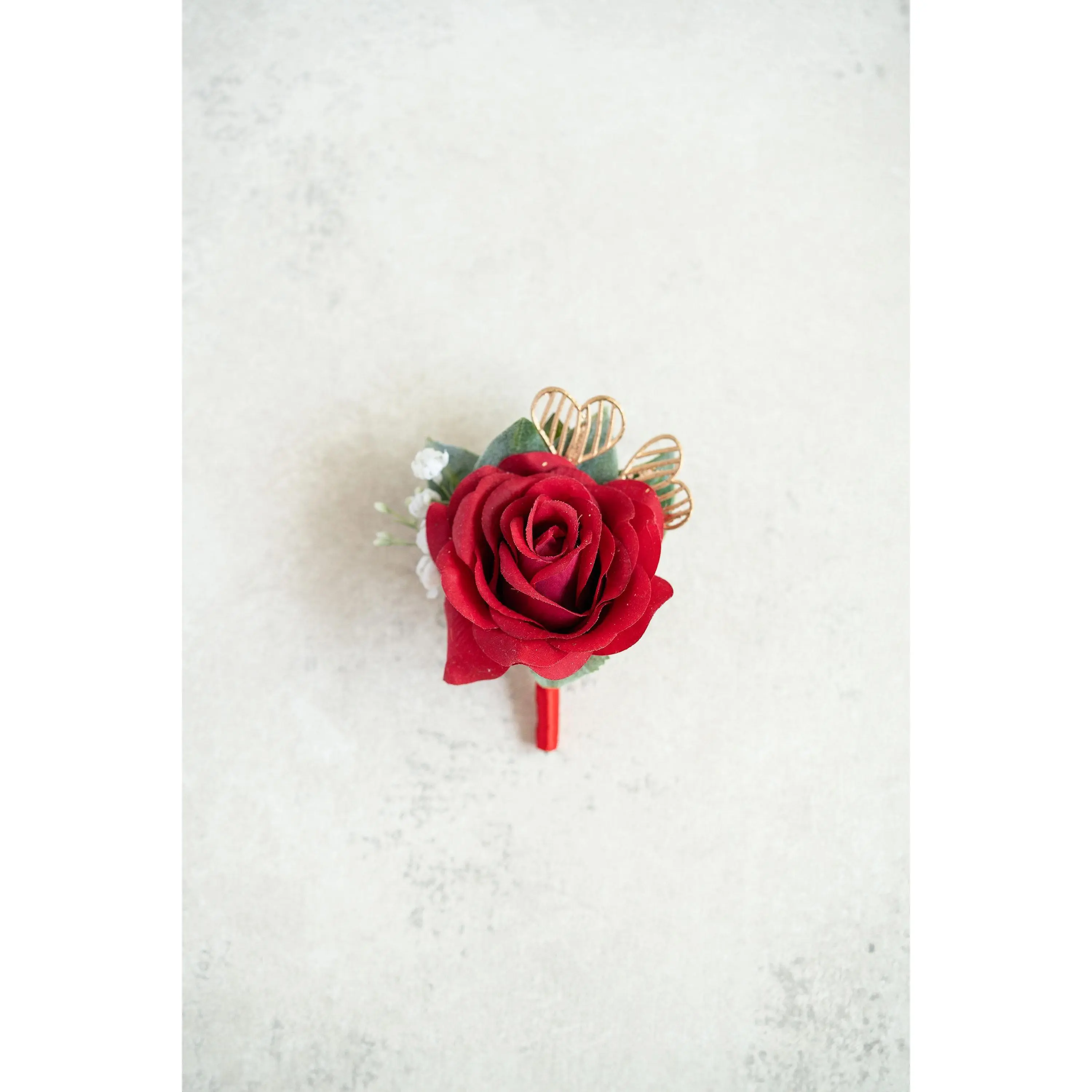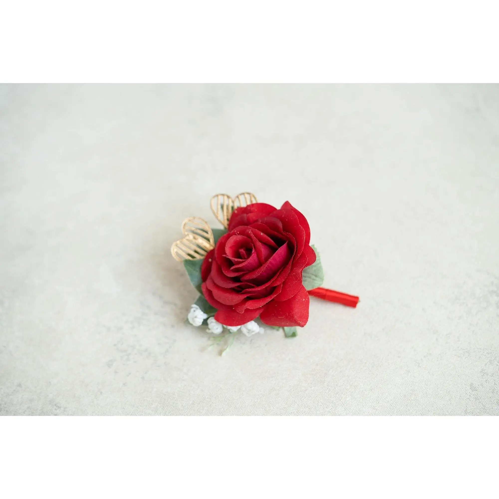 ❤ This gold & red corsage / boutonniere is made by rose flower. The price includes one corsage or one boutonniere.❤ The ribbon color can be customized, and we offer complimentary ribbon printing services.❤ Dimension: 3.15 inches in Diameter❤ Lovingly crafted with real touch flowersThis romantic-looking, lifelike bouquet is crafted to closely mimic the look and feel of fresh blooms. It offers exceptional elasticity, flexibility, and vibrant color gradations, making it the premium choice among artificial flowers.❤ ColorRed & gold❤ Versatile corsage for Weddings, Events & Home DecorThe foam corsage is an ideal choice for wedding flower decorations and home decor. The realistic, delicate petals add elegance and charm, making it perfect for weddings, special events, or even as a beautiful accent in your home.❤Matching bouquets, boutonnieres...All matching items are available, including boutonnieres, corsages, chair decorations, swags, hair accessories, and home decorations. Please message us for a quote, or Email us at coutureblooms.care@gmail.com. We would love to work with your budget and do custom wedding packages just for you!❤Change flower colorsIf you love this bouquet but want different colors, please send me a message, we'd be happy to provide a quote for you.❤PackagingWe will pack your flowers very carefully to ensure they will be delivered safely and in perfect shape.❤ShippingTo better serve you and save your time, we use our private shipping method as the default for most orders: US Addresses: Estimated delivery in 2-5 days UK & European Addresses: Estimated delivery in 5-15 days Australia & Canada Addresses: Estimated delivery in 10-25 daysFor urgent orders, we offer FedEx and DHL global express shipping.***Our home base is in Orange County, California, and we source from global manufacturing partners to ensure the highest quality of our products.Feel free to reach out with any additional questions. Your satisfaction is our top priority.***All items and photos are copyrighted and belong exclusively to Couture Blooms.
