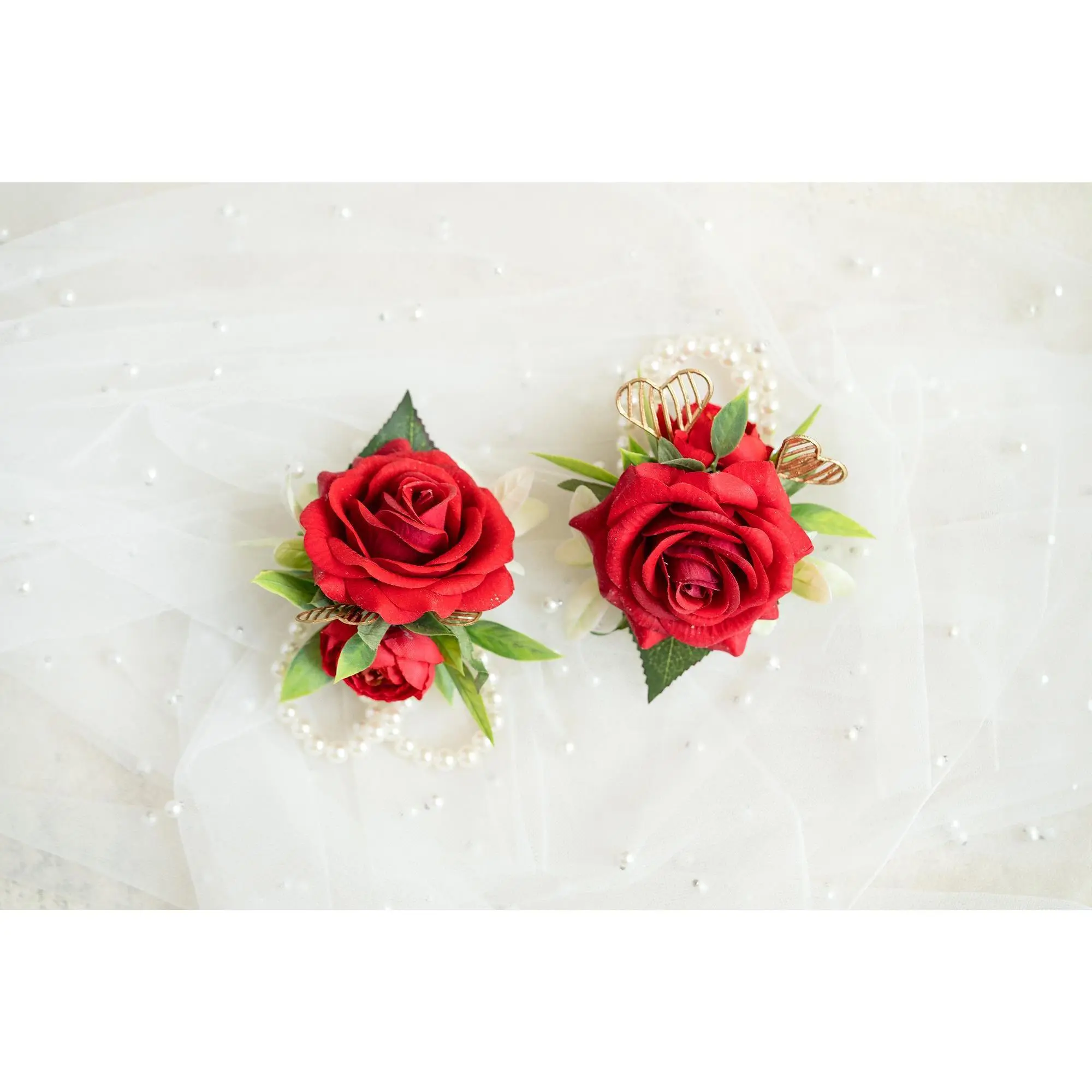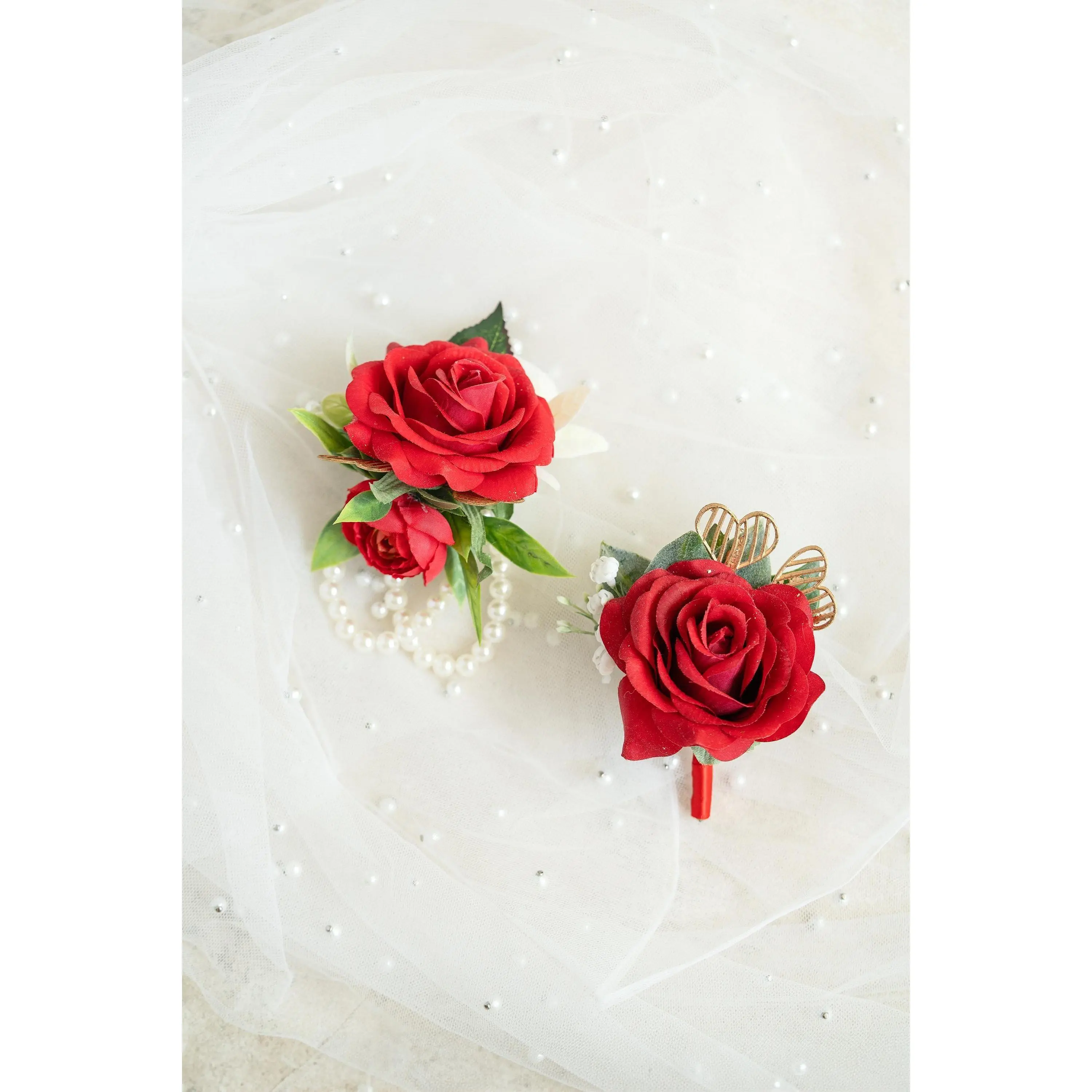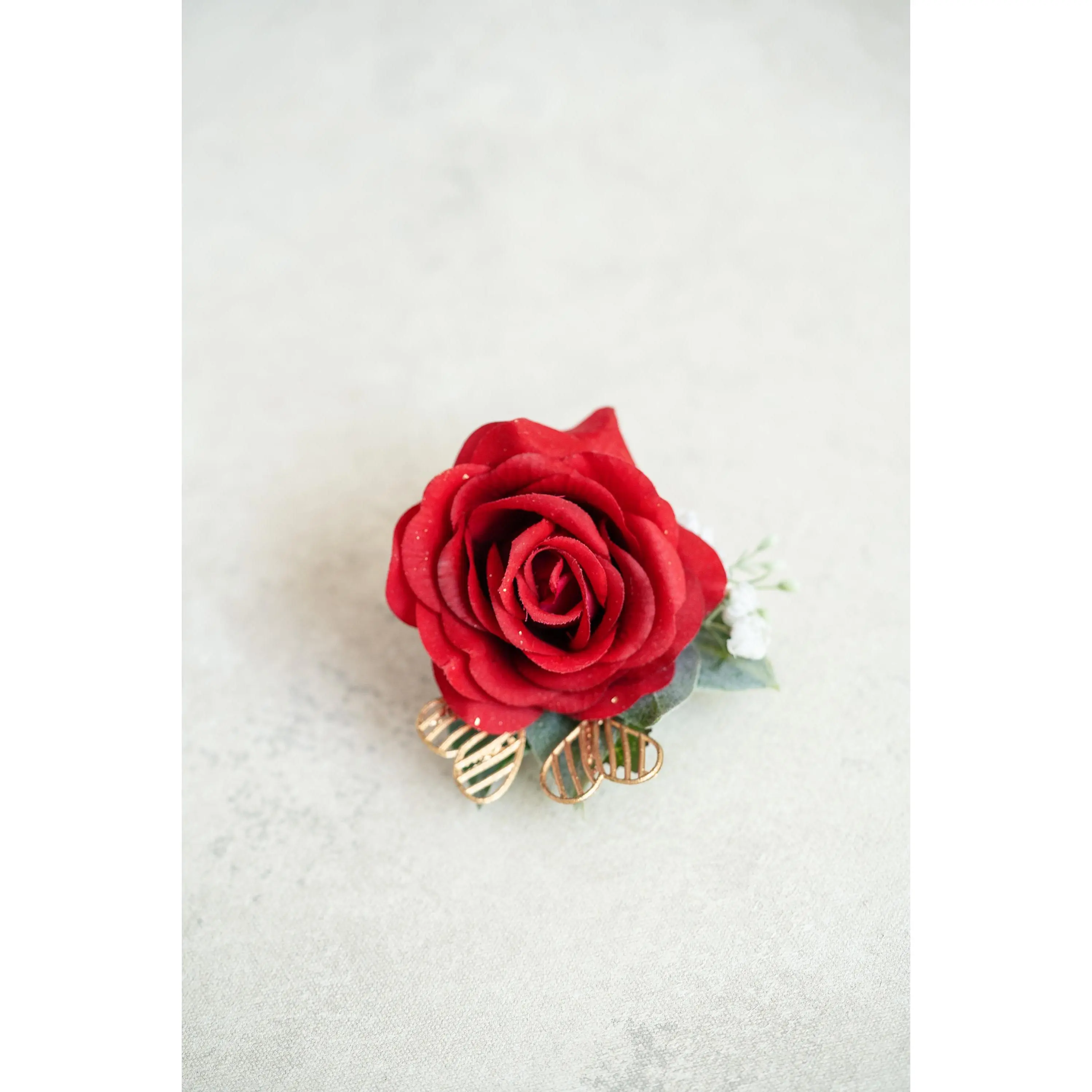 ❤ This gold & red corsage / boutonniere is made by rose flower. The price includes one corsage or one boutonniere.❤ The ribbon color can be customized, and we offer complimentary ribbon printing services.❤ Dimension: 3.15 inches in Diameter❤ Lovingly crafted with real touch flowersThis romantic-looking, lifelike bouquet is crafted to closely mimic the look and feel of fresh blooms. It offers exceptional elasticity, flexibility, and vibrant color gradations, making it the premium choice among artificial flowers.❤ ColorRed & gold❤ Versatile corsage for Weddings, Events & Home DecorThe foam corsage is an ideal choice for wedding flower decorations and home decor. The realistic, delicate petals add elegance and charm, making it perfect for weddings, special events, or even as a beautiful accent in your home.❤Matching bouquets, boutonnieres...All matching items are available, including boutonnieres, corsages, chair decorations, swags, hair accessories, and home decorations. Please message us for a quote, or Email us at coutureblooms.care@gmail.com. We would love to work with your budget and do custom wedding packages just for you!❤Change flower colorsIf you love this bouquet but want different colors, please send me a message, we'd be happy to provide a quote for you.❤PackagingWe will pack your flowers very carefully to ensure they will be delivered safely and in perfect shape.❤ShippingTo better serve you and save your time, we use our private shipping method as the default for most orders: US Addresses: Estimated delivery in 2-5 days UK & European Addresses: Estimated delivery in 5-15 days Australia & Canada Addresses: Estimated delivery in 10-25 daysFor urgent orders, we offer FedEx and DHL global express shipping.***Our home base is in Orange County, California, and we source from global manufacturing partners to ensure the highest quality of our products.Feel free to reach out with any additional questions. Your satisfaction is our top priority.***All items and photos are copyrighted and belong exclusively to Couture Blooms.