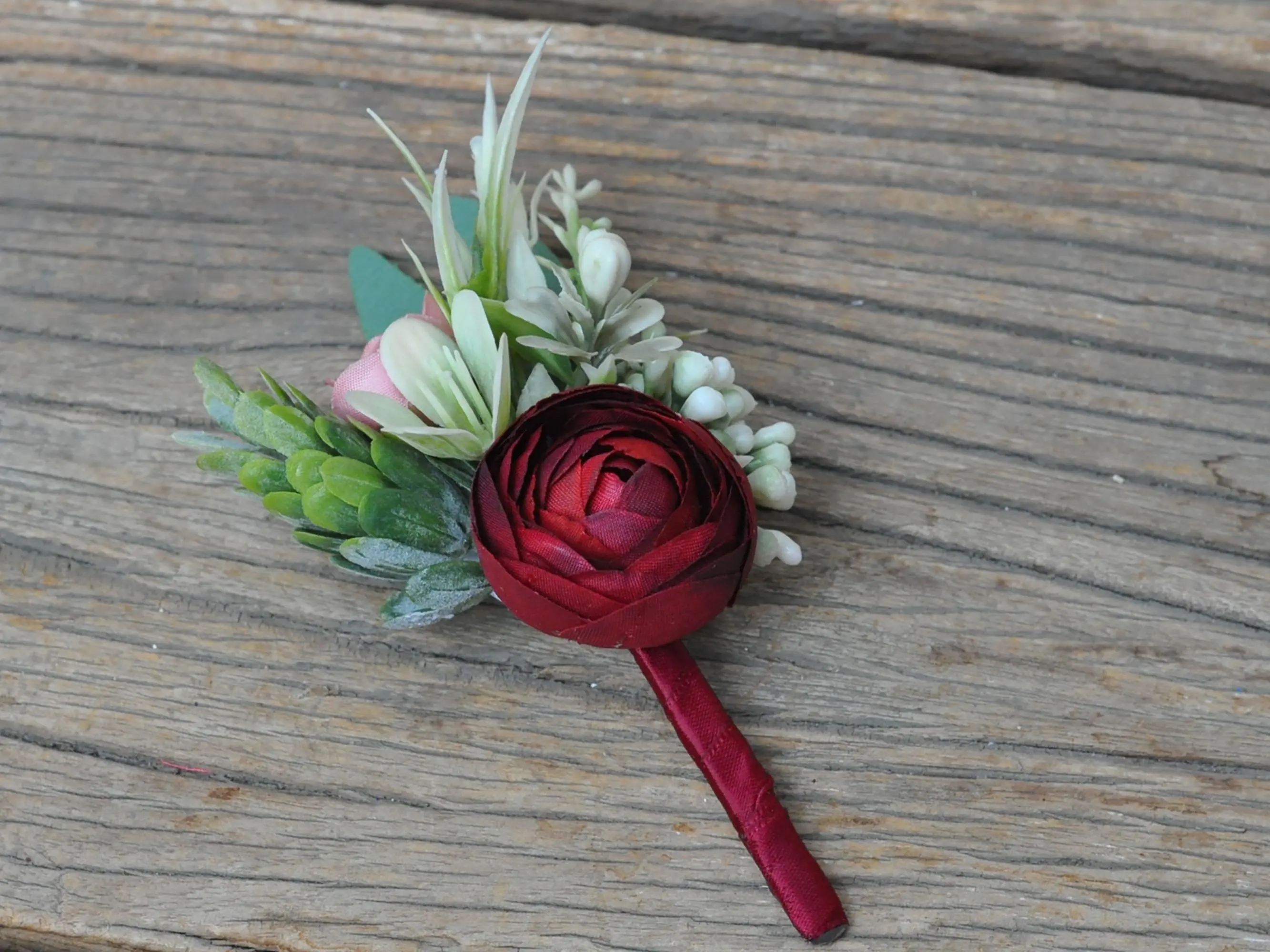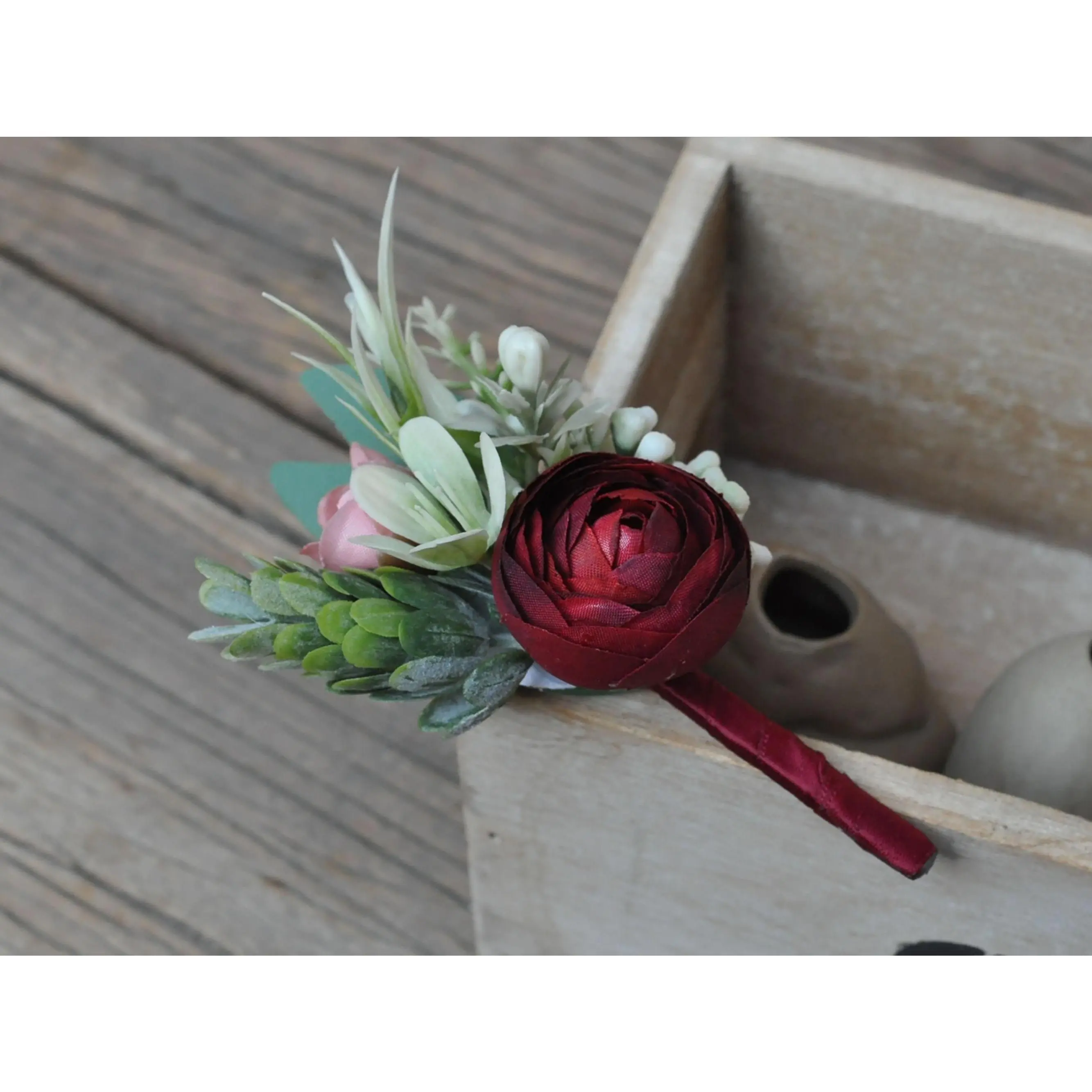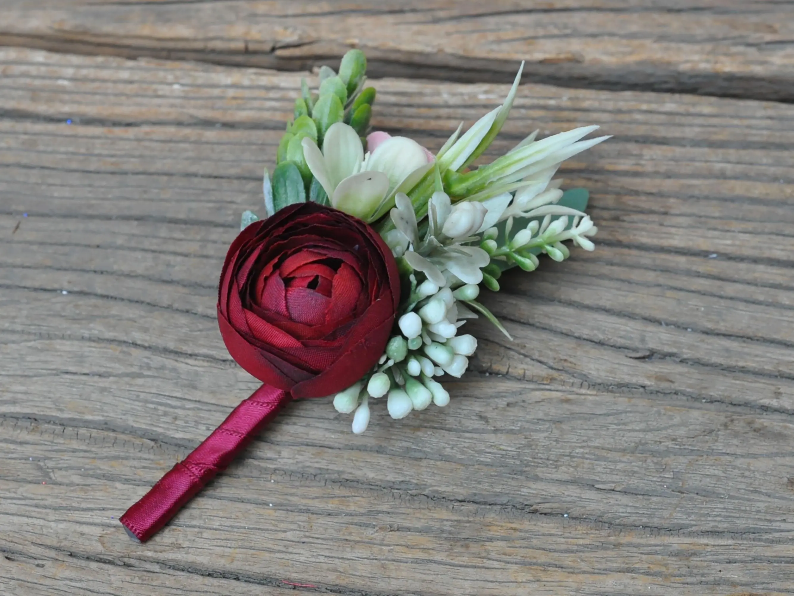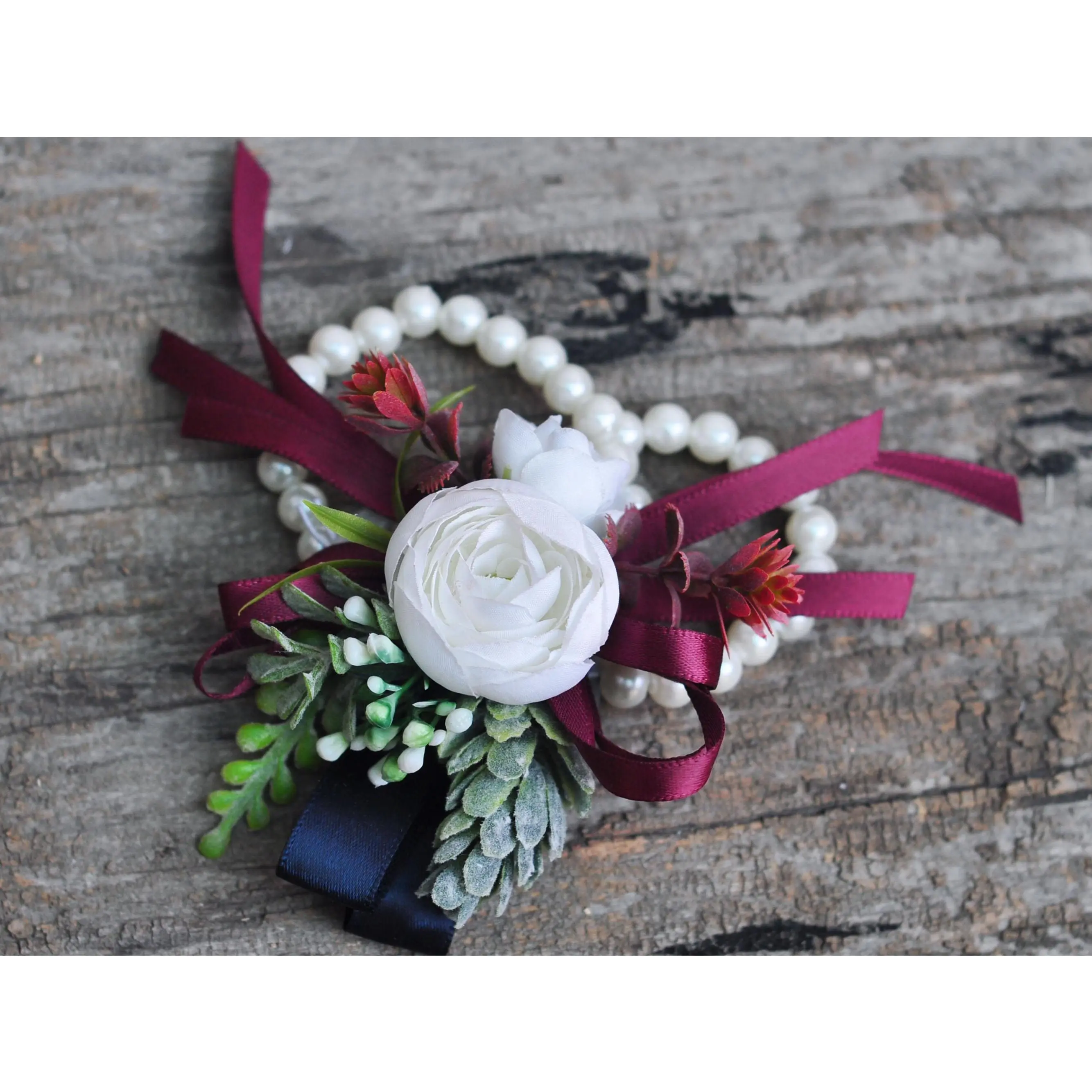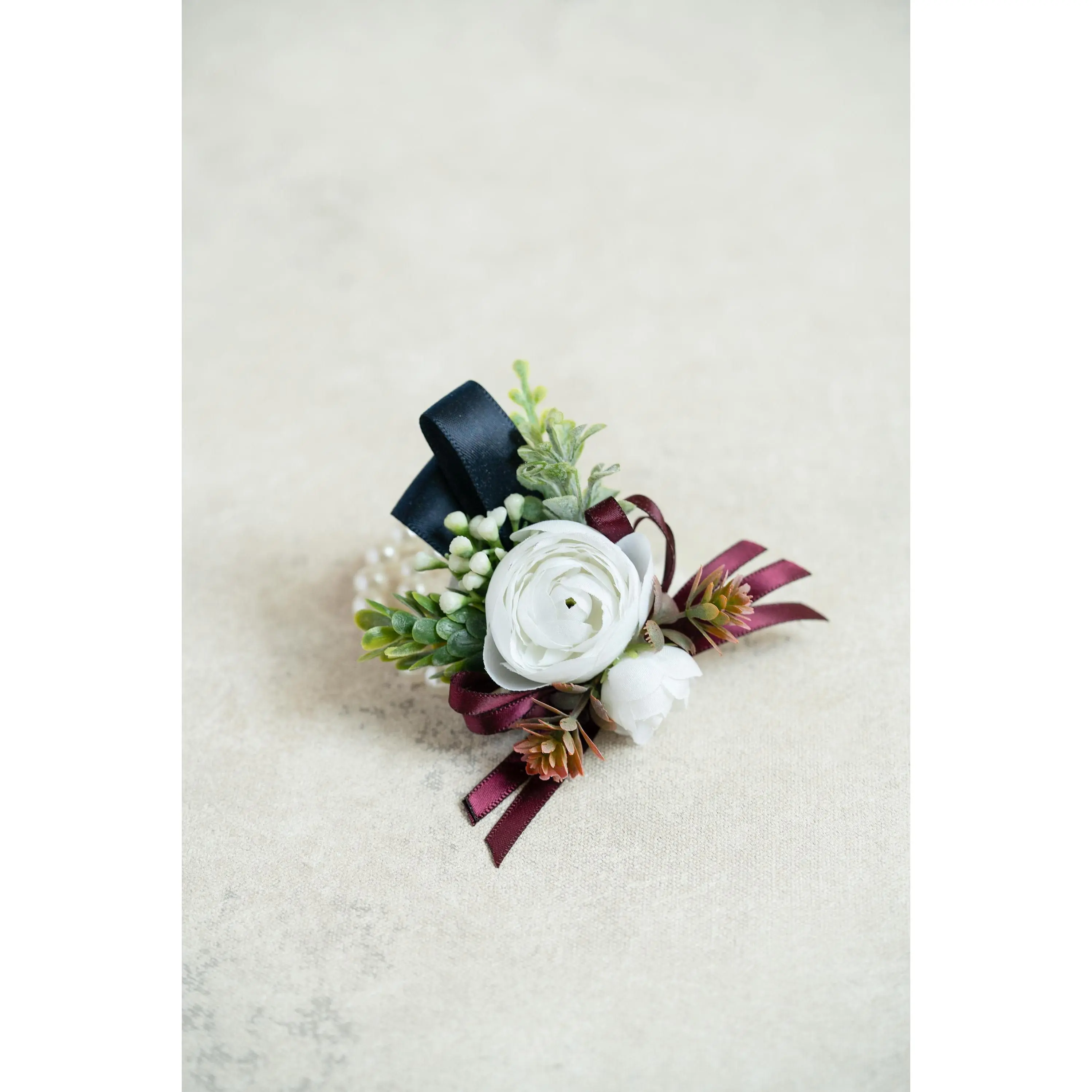 ❤This burgundy and white corsage / boutonniere is made by silk rose flower and mixed with plastic dusty greenery. The price includes one corsage or one boutonniere.The ribbon color can be customized, and we offer complimentary ribbon printing services.❤ Dimension: 4 inches in Diameter(corsage)❤ Lovingly crafted with silk rose flowersThis romantic looking, lifelike bouquet is crafted to closely mimic the look and feel of fresh blooms. It offers exceptional elasticity, flexibility, and vibrant color gradations, making them the premium choice among artificial flowers.❤ Colorburgundy & white❤ Versatile silk corsage for Weddings, Events & Home DecorThe silk corsage is an ideal choice for wedding flower decorations, and home decor. It's realistic, delicate petals add elegance and charm, making it perfect for weddings, special events, or even as a beautiful accent in your home.❤Matching bouquets, boutonnieres...All matching items are available, including boutonnieres, corsages, chair decorations, swags, hair accessories, and home decorations. Please message us for a quote or Email us at coutureblooms.care@gmail.com. We would love to work with your budget and do custom wedding packages just for you!❤Change flower colorsIf you love this bouquet but want different colors, please send me a message, we'd be happy to provide a quote for you.❤PackagingWe will pack your flowers very carefully to ensure they will be delivered safely and in perfect shape.❤ShippingTo better serve you and save your time, we use our private shipping method as the default for most orders: US Addresses: Estimated delivery in 7-20 days UK & European Addresses: Estimated delivery in 5-15 days Australia & Canada Addresses: Estimated delivery in 10-25 daysFor urgent orders, we offer FedEx and DHL global express shipping.***Our home base is in Orange County, California, and we source from global manufacturing partners to ensure the highest quality of our products.Feel free to reach out with any additional questions. Your satisfaction is our top priority.***All items and photos are copyrighted and belong exclusively to Couture Blooms.