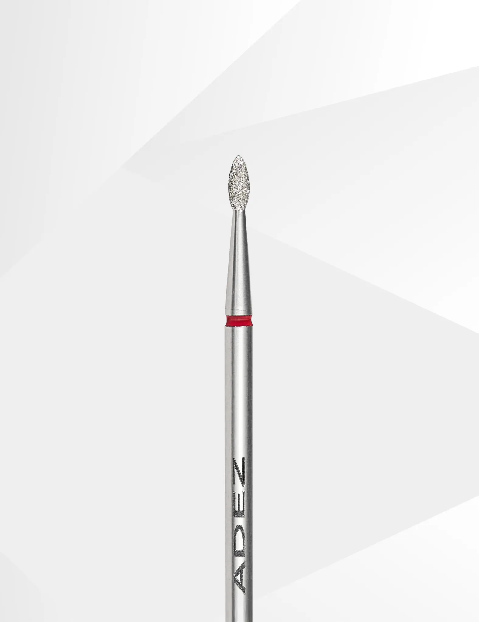 Bits coated with fine, uniform diamond particles, ensuring high-quality control so the particles remain firmly adhered. The base is made of stainless steel. Its shape is ideal for cleaning cuticles and contours. The tip is not too sharp or fine. Recommended for normal, sensitive, and thin skin.