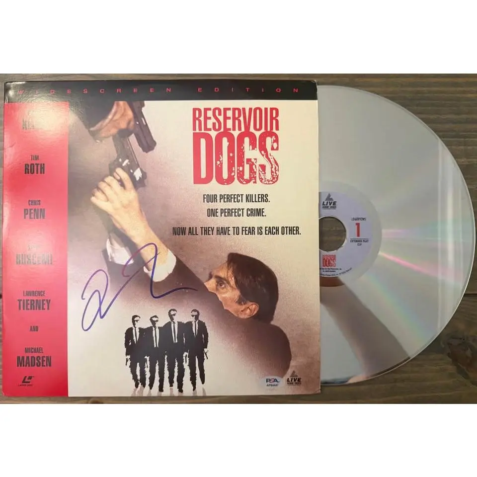For sale is an authentic Reservoir Dogs (Widescreen Edition) LaserDisc cover signed in bold blue marker by Quentin Tarantino ✅